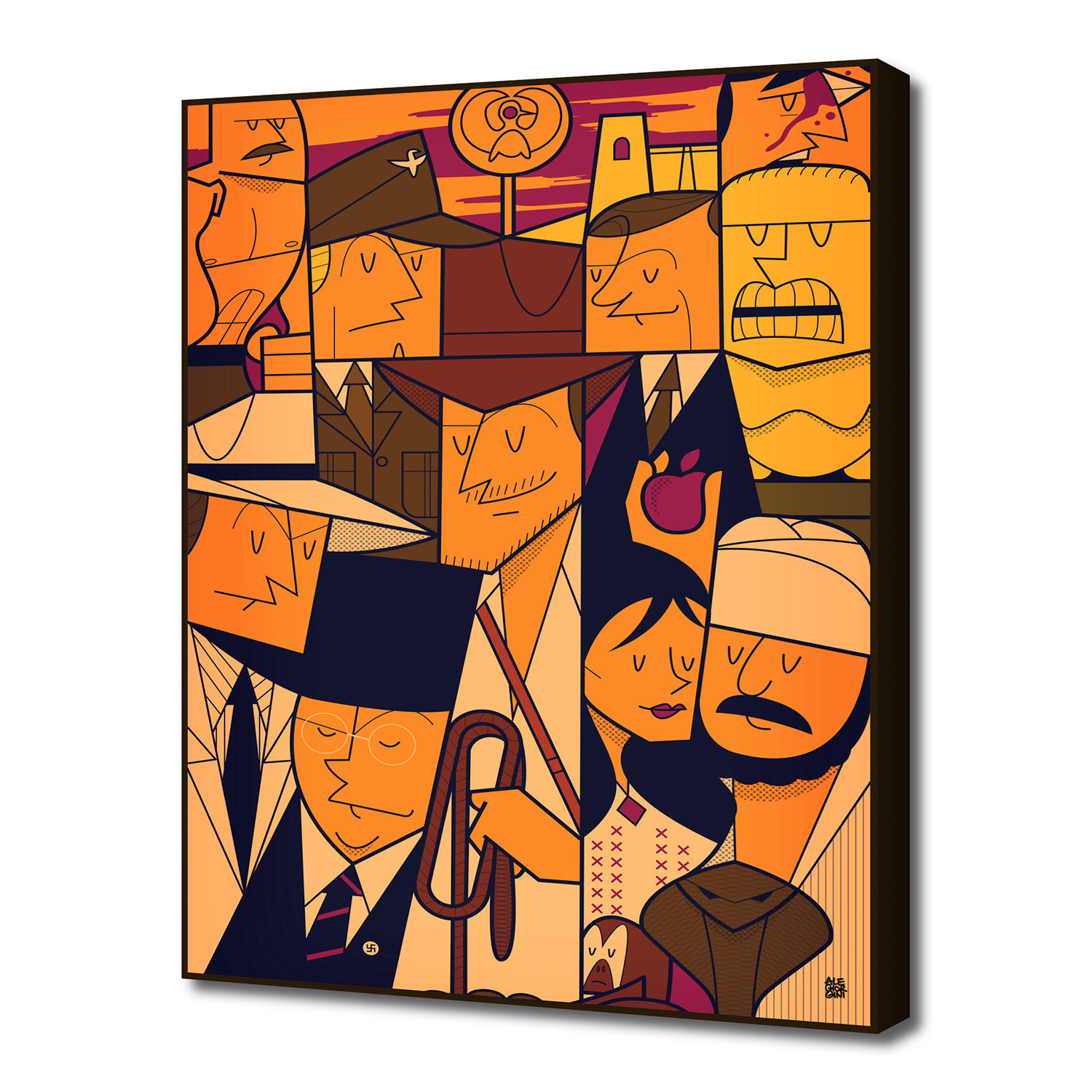 Featuring the cast of major shows and movies, done in his own signature style, this art block piece by Ale Giorgini is a cheeky addition to any space. Printed on fine art paper and mounted to 3/8" masonite board, this pop-culture-inspired piece offers a collage of dimension and whimsy whether it's in your bedroom, office, or studio.