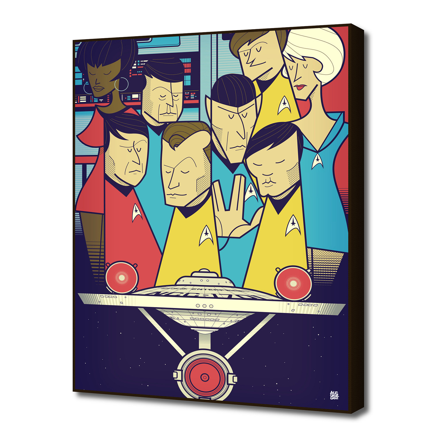 Featuring the cast of major shows and movies, done in his own signature style, this art block piece by Ale Giorgini is a cheeky addition to any space. Printed on fine art paper and mounted to 3/8" masonite board, this pop-culture-inspired piece offers a collage of dimension and whimsy whether it's in your bedroom, office, or studio.