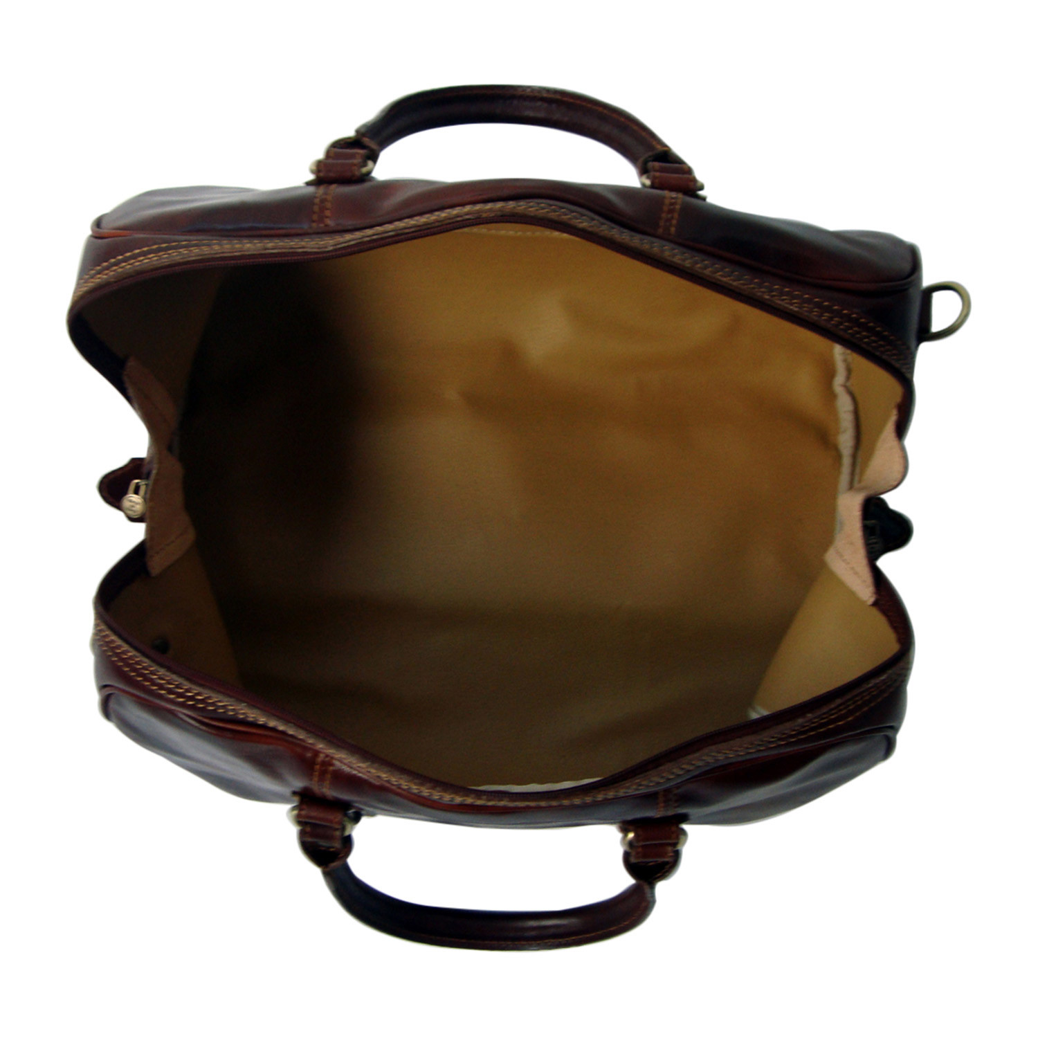 There's no material as remarkable as Italian leather. Every Allesia bag is comprised of incredible top grain, polished calfskin leather, made in Italy to exacting standards. This Siena Travel Bag has the right amount of space to see you through your travels, with antique brass hardware completing its couture Italian look.