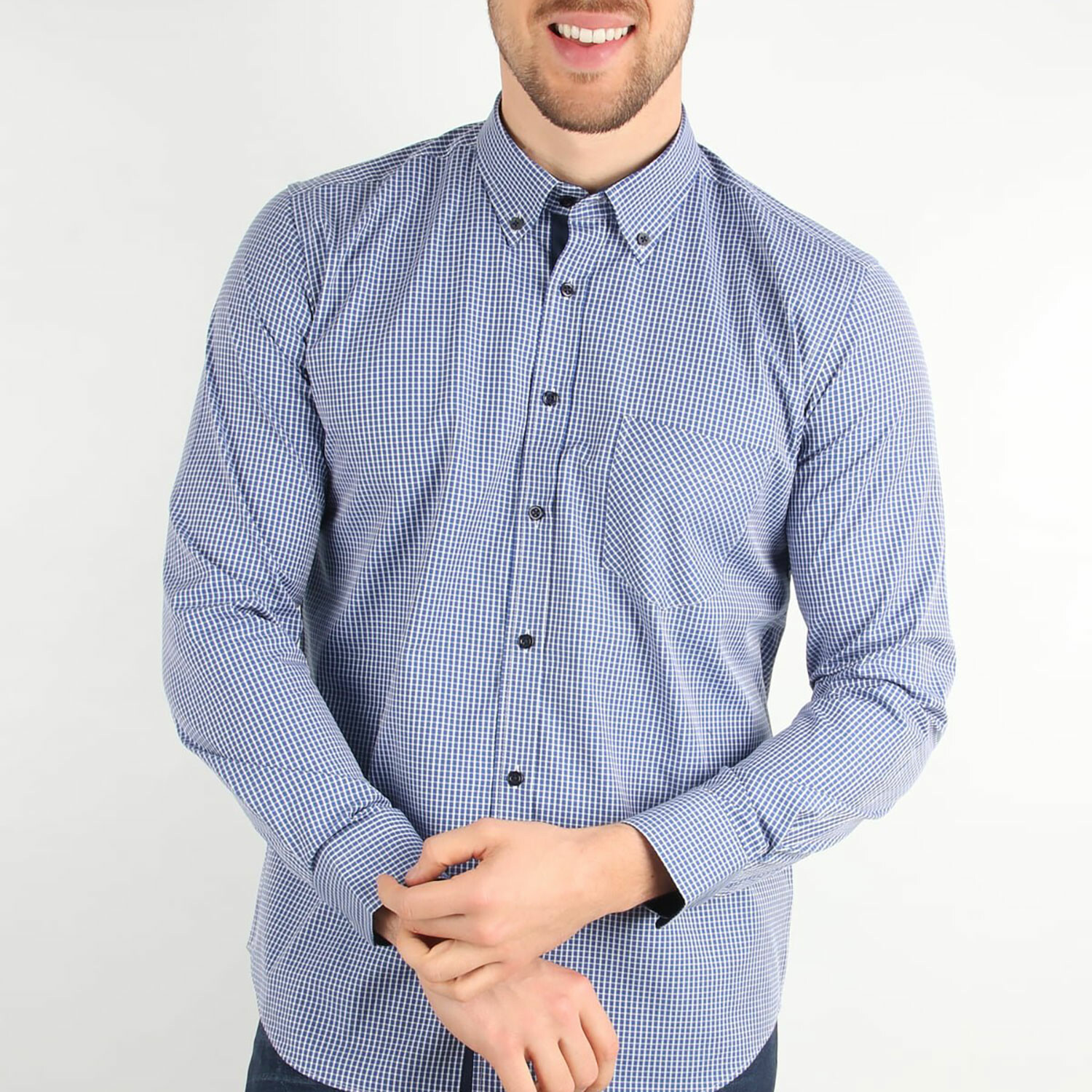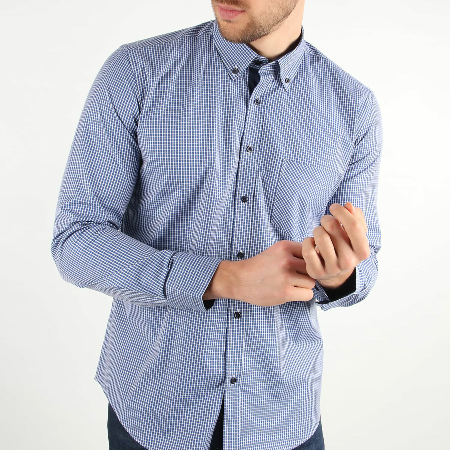 Chase Button Up // Blue + White Checkered