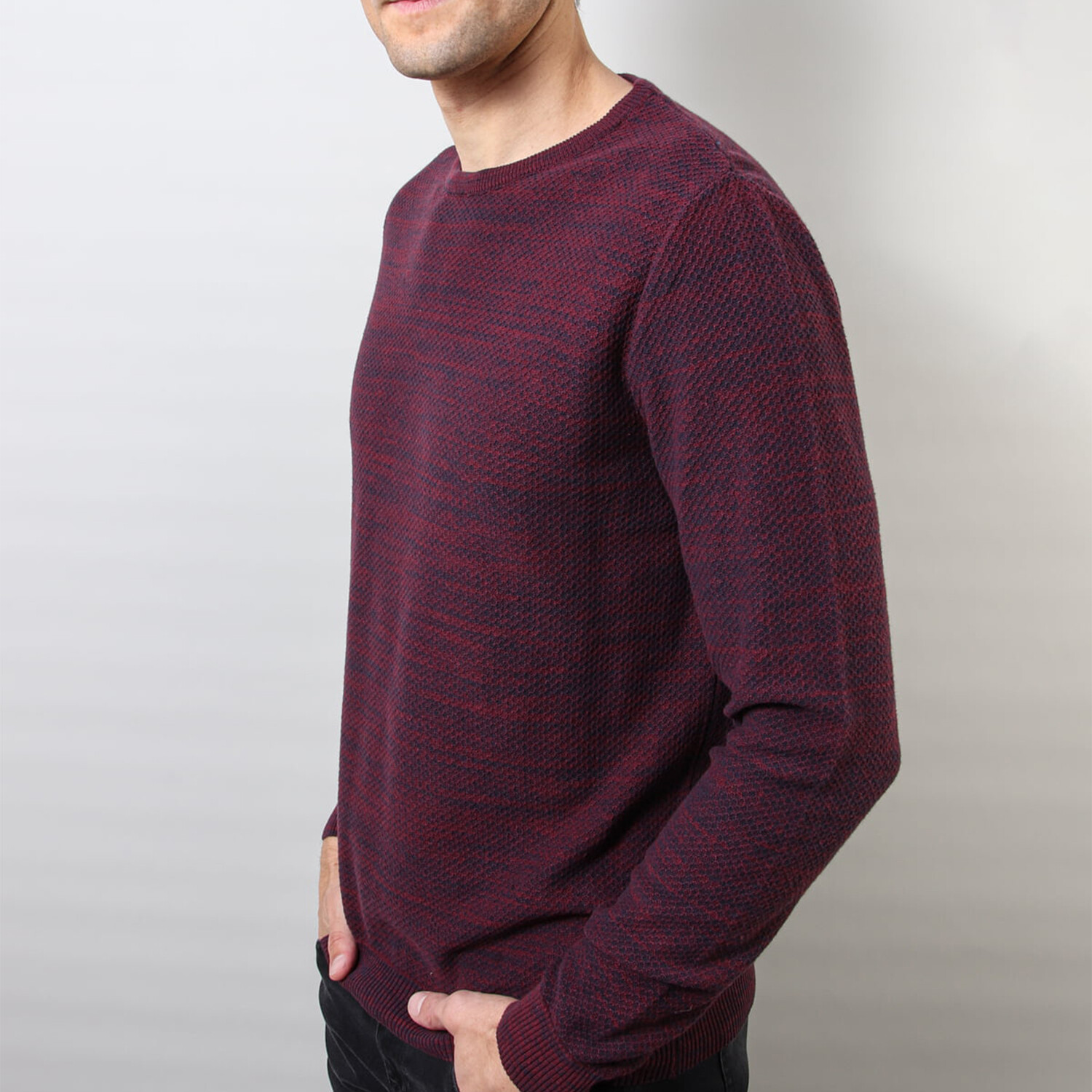 Regular Fit Crew Neck Sweater // Black + Burgundy