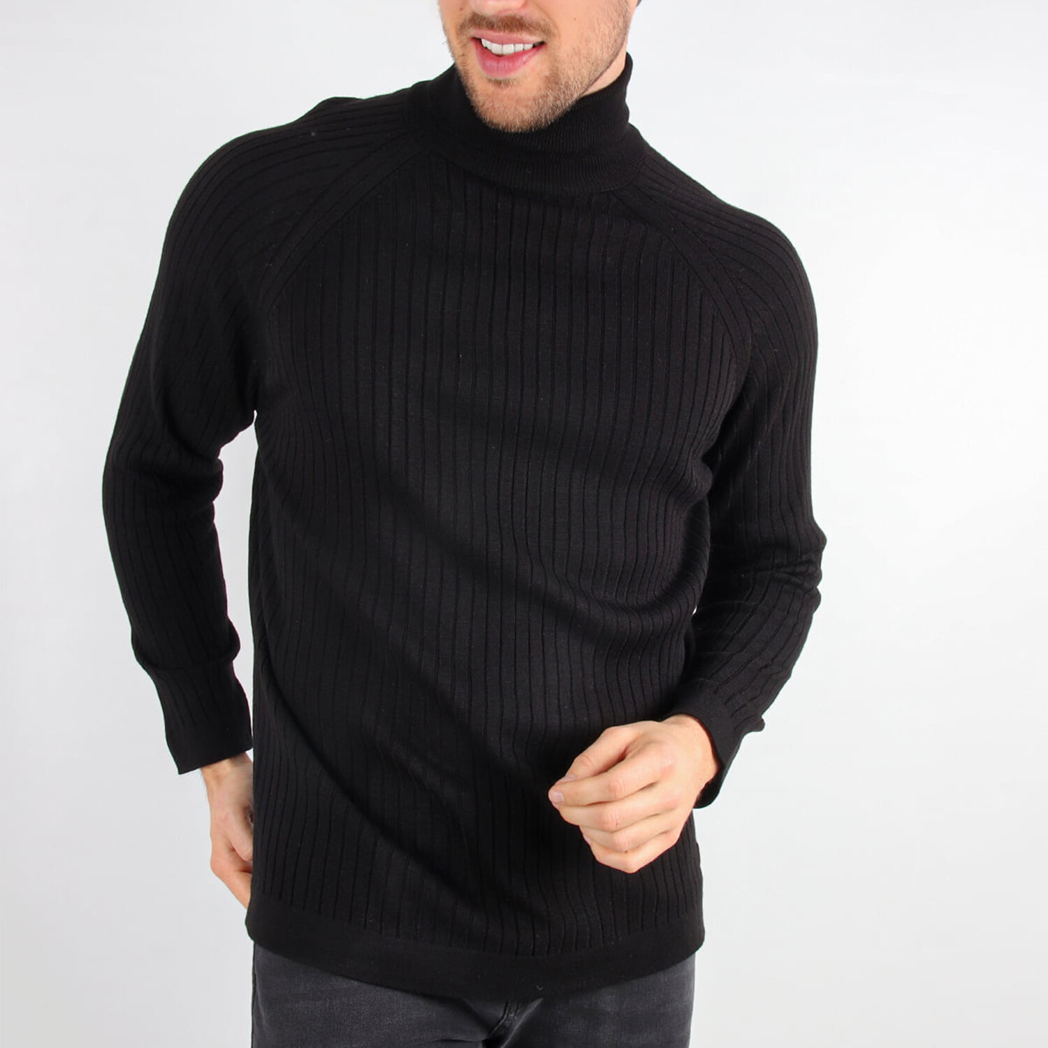 Ribbed Slim Fit Turtleneck Sweater // Black