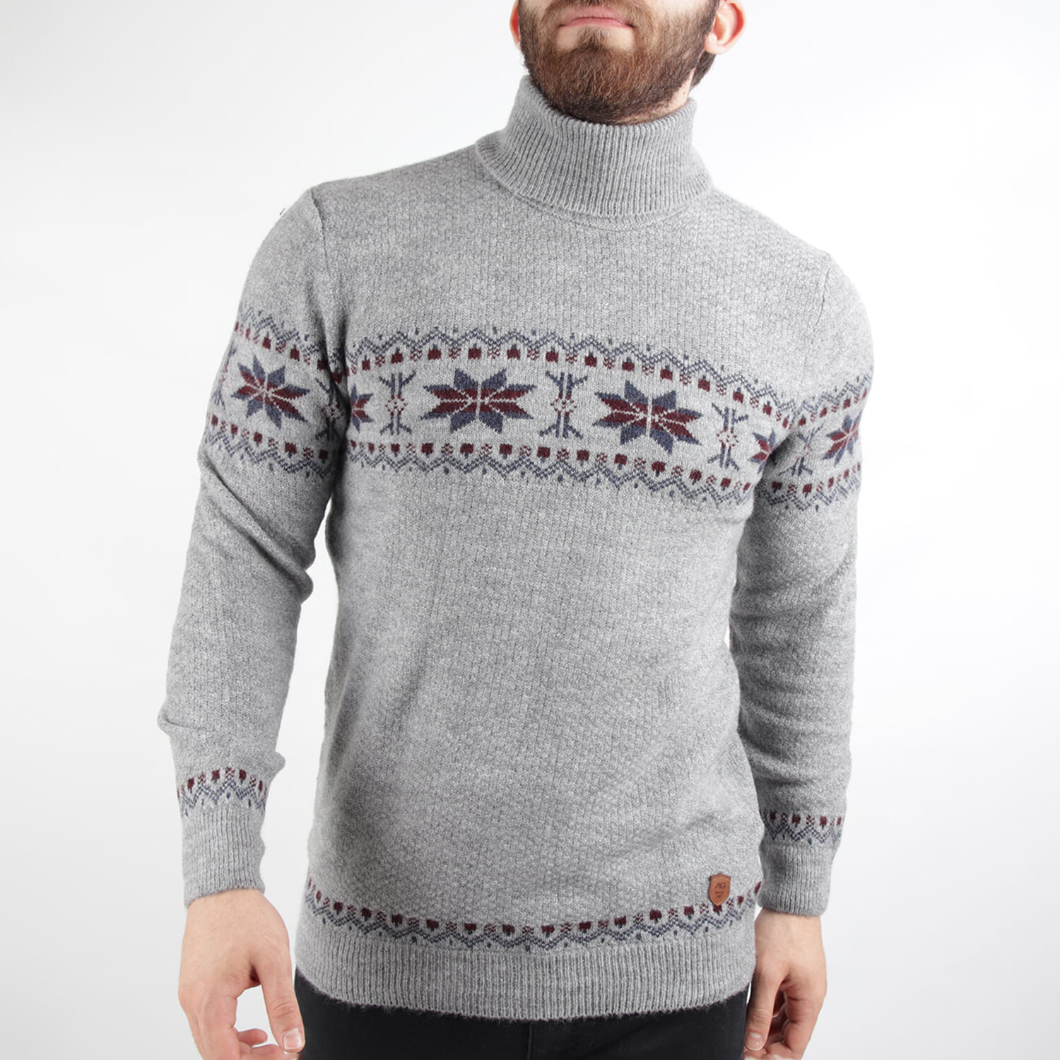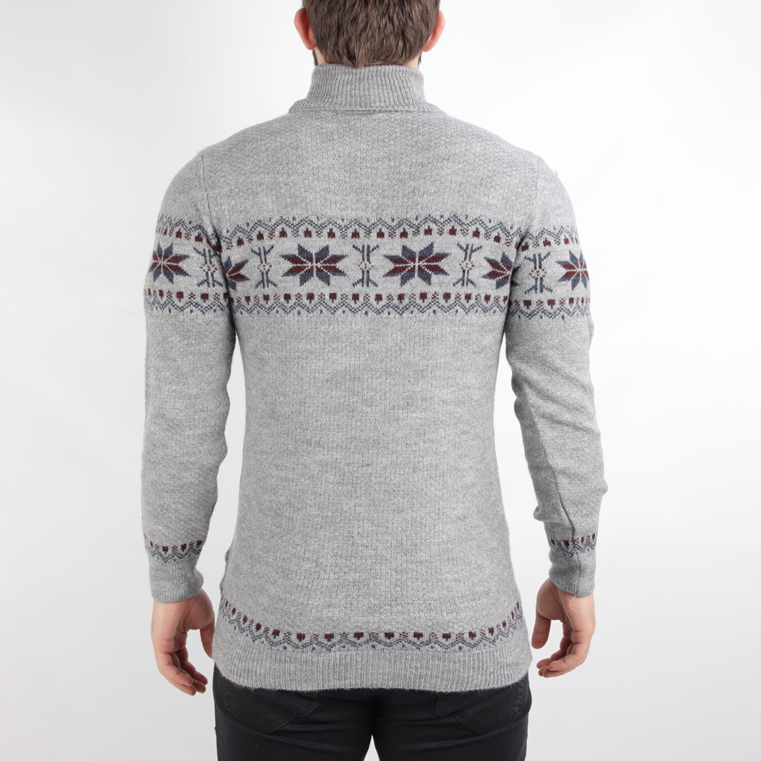 Snowflake Regular Fit Turtleneck Sweater // Gray Melange