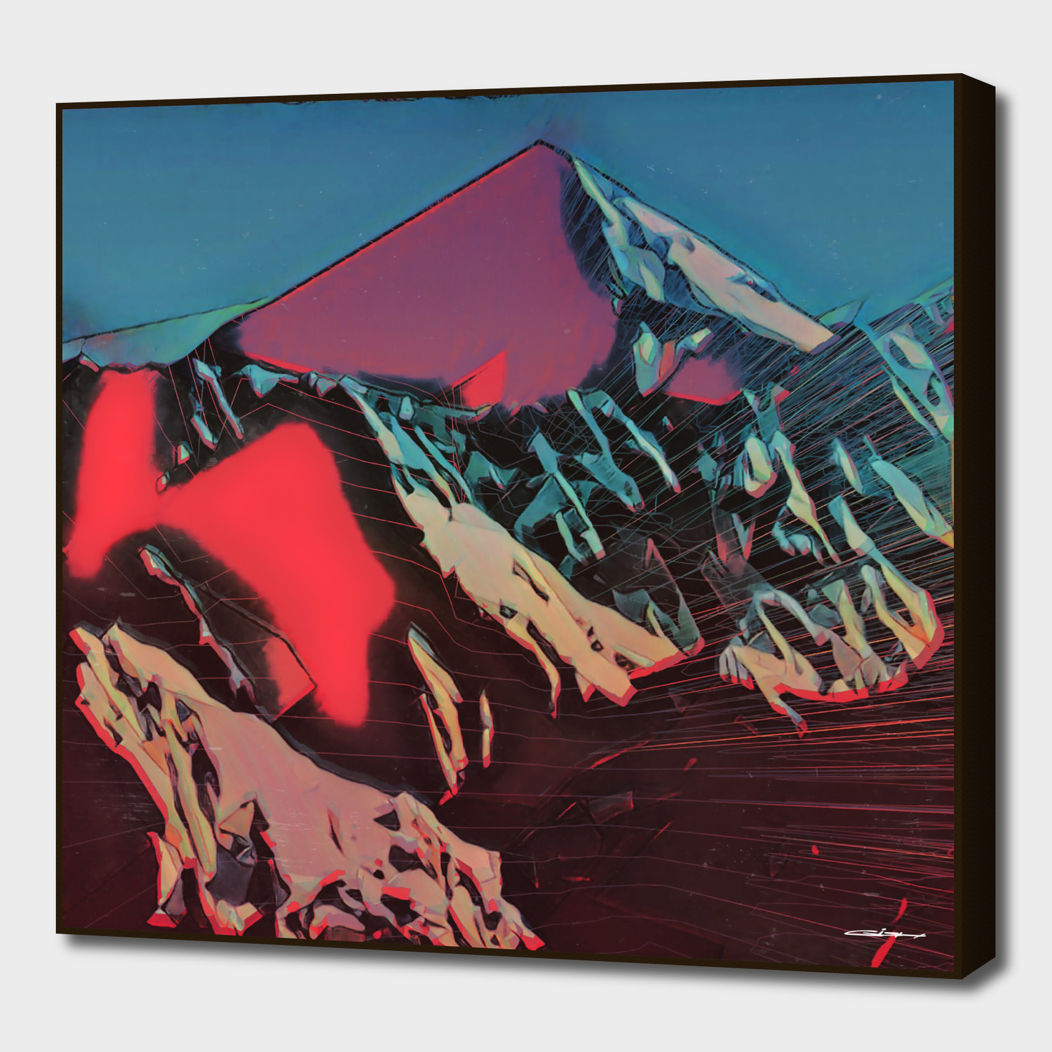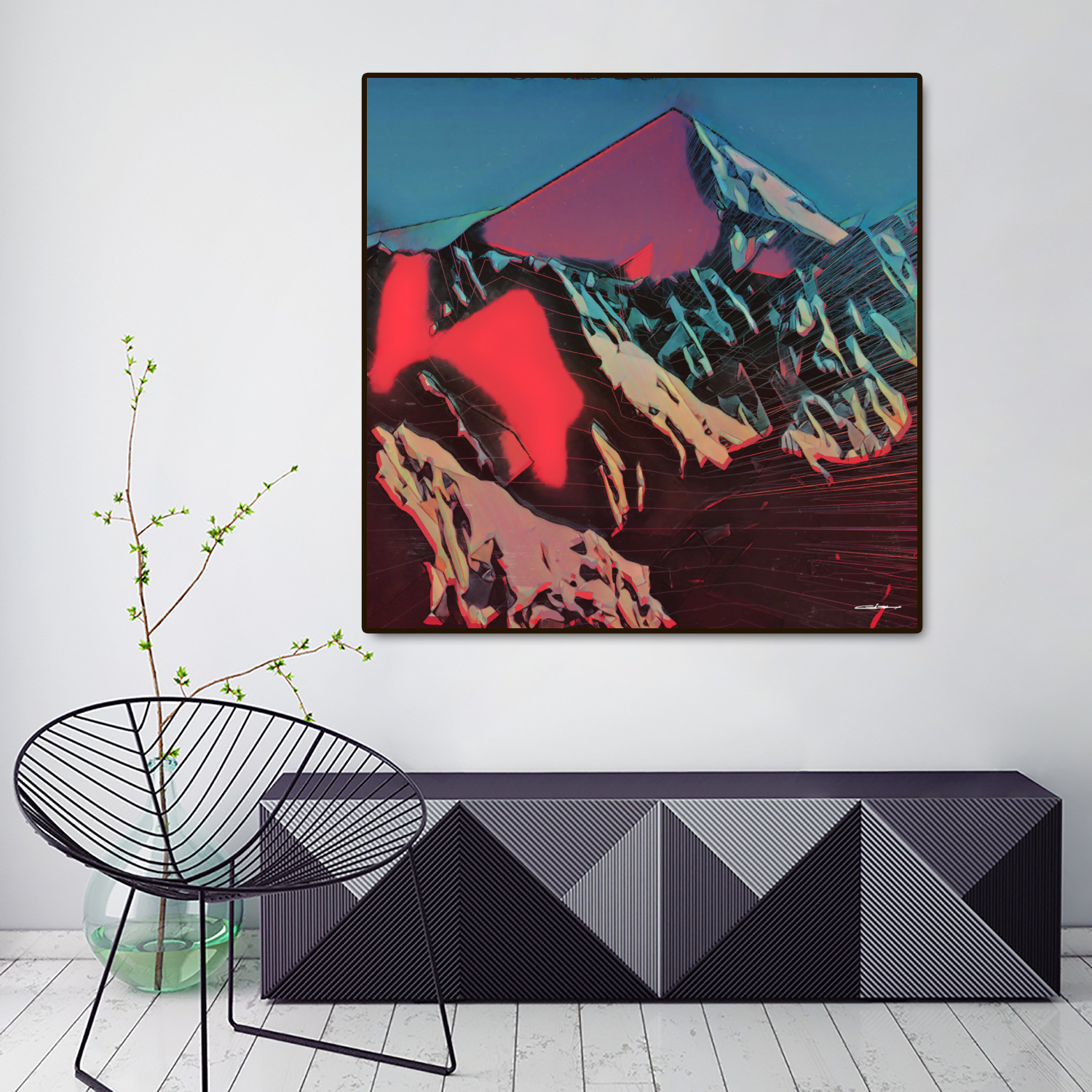 Layered, colorful, and mountainous, this art block from Alexander Gish is printed on fine art paper and mounted to 3/8" masonite board. Low-profile but unique, this piece offers a collage of dimension and saturated whimsy whether it's in your bedroom, office, or studio.