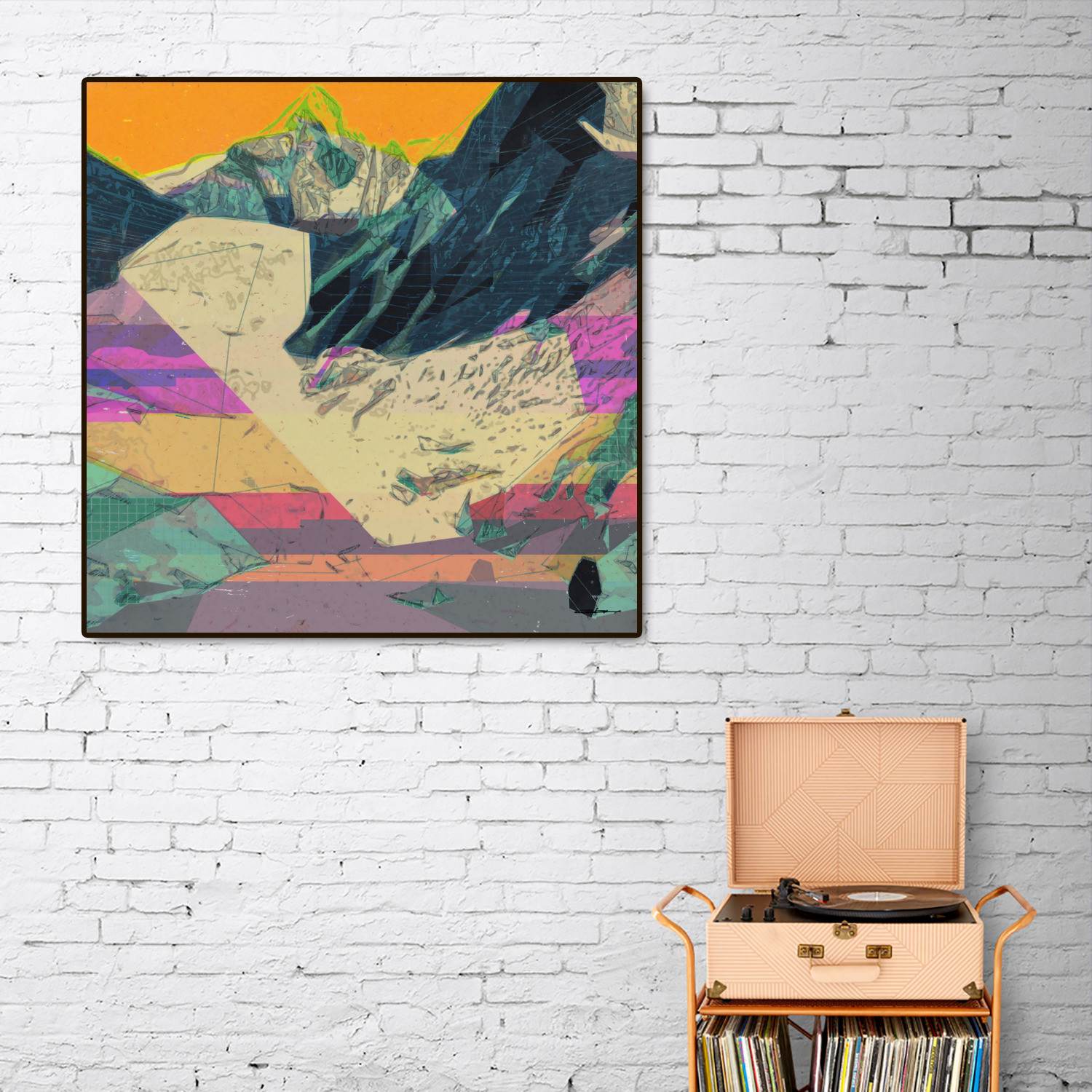 Layered, colorful, and mountainous, this art block from Alexander Gish is printed on fine art paper and mounted to 3/8" masonite board. Low-profile but unique, this piece offers a collage of dimension and saturated whimsy whether it's in your bedroom, office, or studio.