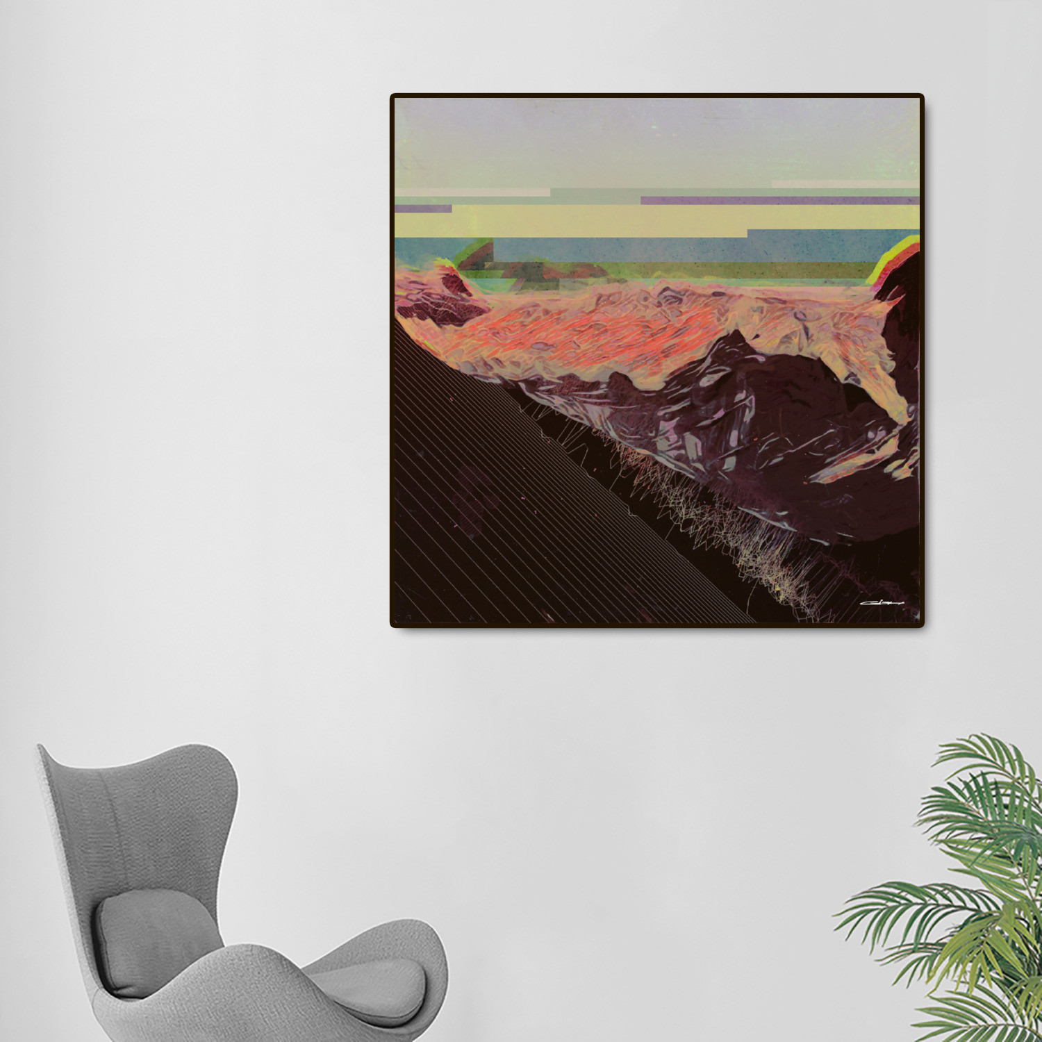 Layered, colorful, and mountainous, this art block from Alexander Gish is printed on fine art paper and mounted to 3/8" masonite board. Low-profile but unique, this piece offers a collage of dimension and saturated whimsy whether it's in your bedroom, office, or studio.