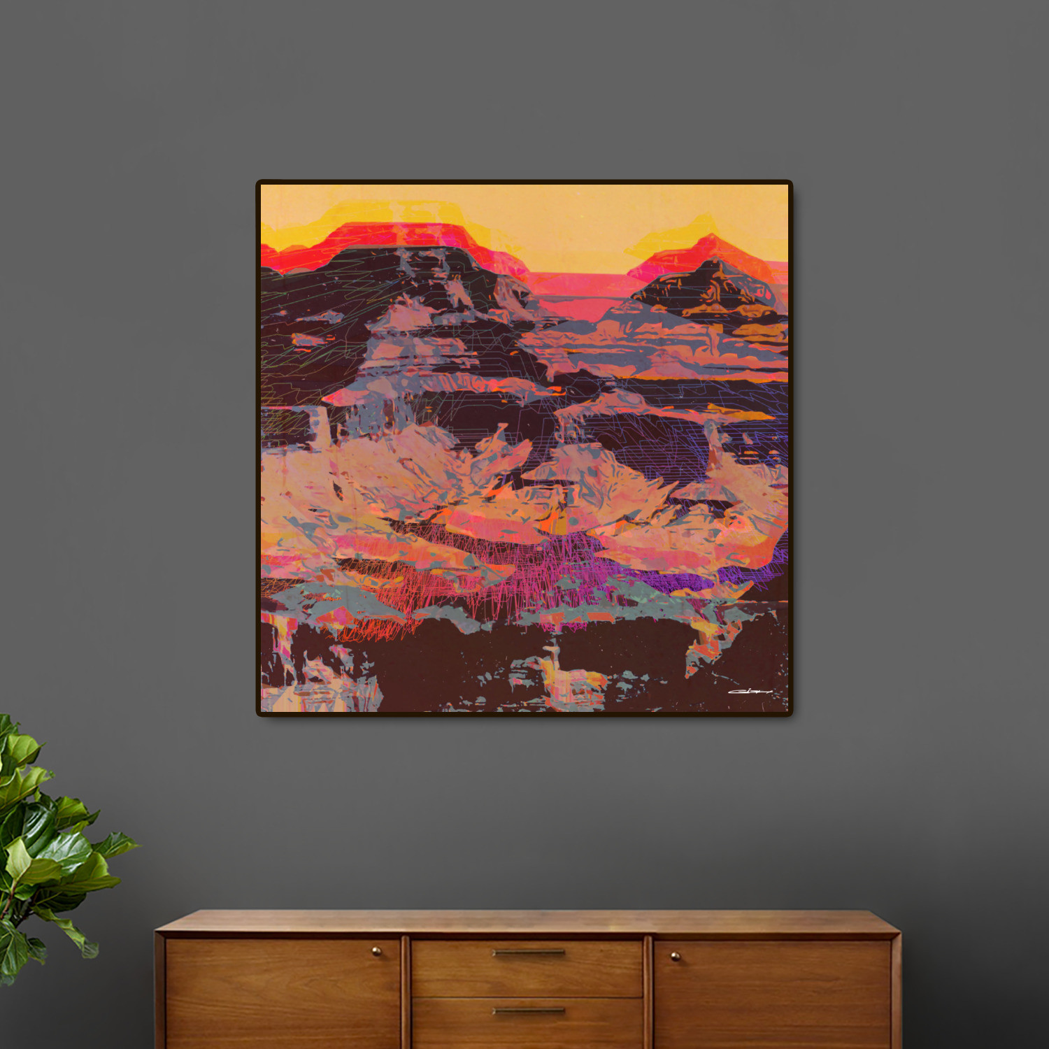 Layered, colorful, and mountainous, this art block from Alexander Gish is printed on fine art paper and mounted to 3/8" masonite board. Low-profile but unique, this piece offers a collage of dimension and saturated whimsy whether it's in your bedroom, office, or studio.