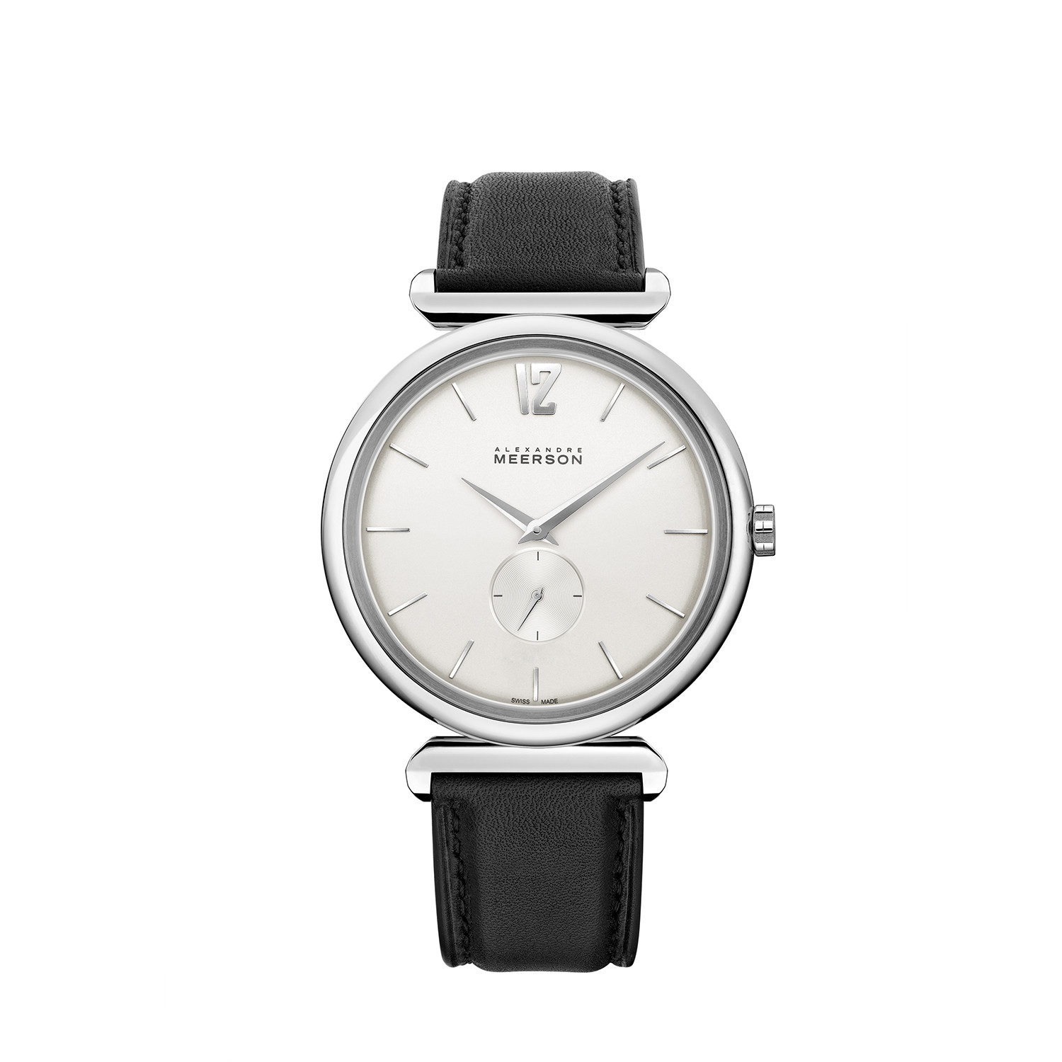 The Première is an interpretation of the classic dress watch. It is elegant, understated and contemporary; the Swiss made Première reveals its architecture as you wear it. This luxury watch is timeless. The asymmetric hands enable greater readability, while the case is curved to fit your wrist perfectly. Only noble materials are used, and every element of the movement is decorated, even if it is not visible, to reflect the integrity of ALEXANDRE MEERSON. It is uncompromising, unpretentious and designed for the strong and self-assured individual. As for every Alexandre Meerson luxury watch, the Altitude Première with date can be tailored for the perfect fit.