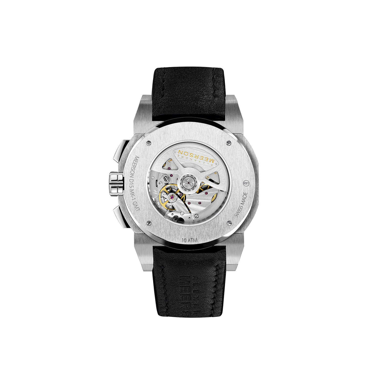 At 44mm in diameter, the Swiss made MEERSON D15 remains understated; with its slim profile and subtle styling it is both a muscular and refined piece. In addition to its trademark geometric styling, the D15 MK-1 GMT carries the signature of the house: sapphire crystal glass gently concaved at the back to fit the wrist like a 'second skin'.The Meerson D15 has been designed by Alexandre Meerson with the modern traveller in mind, in the true spirit of the British Luxury Watch Brand.