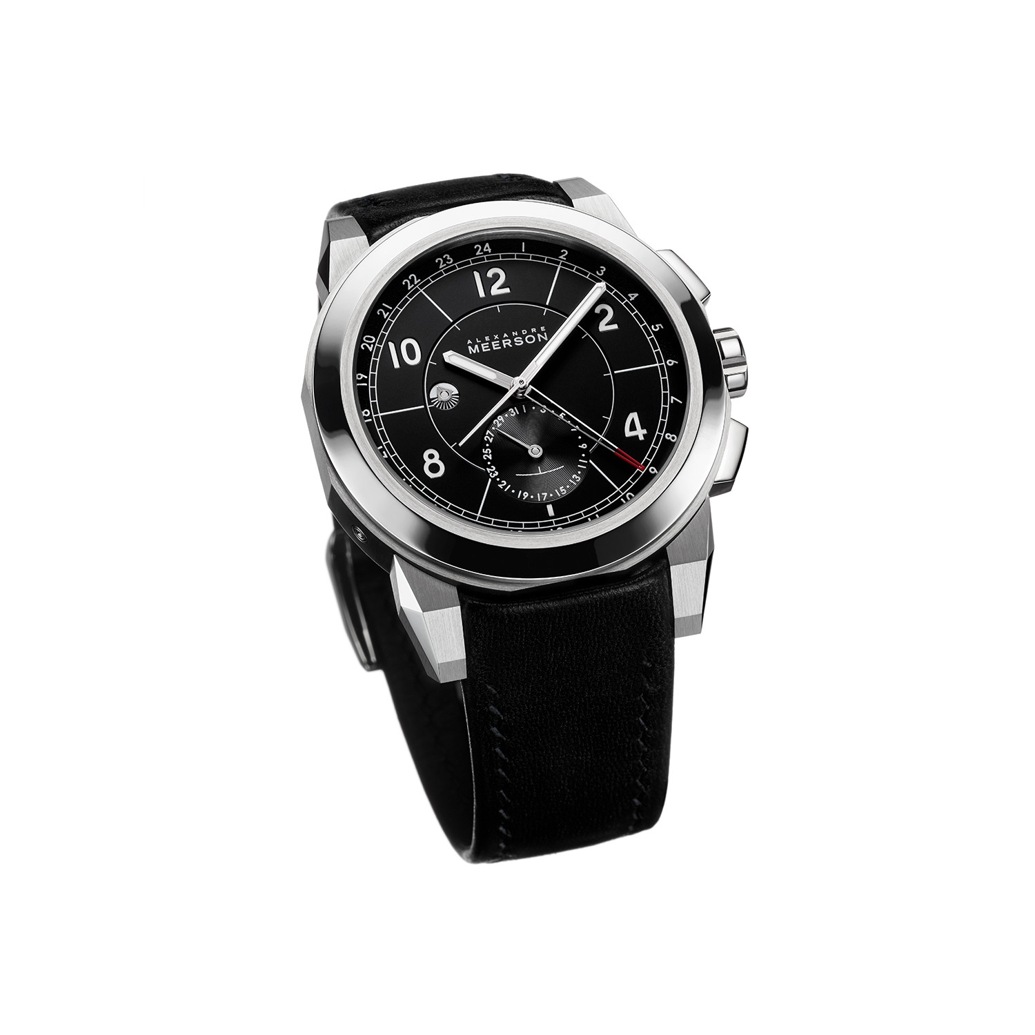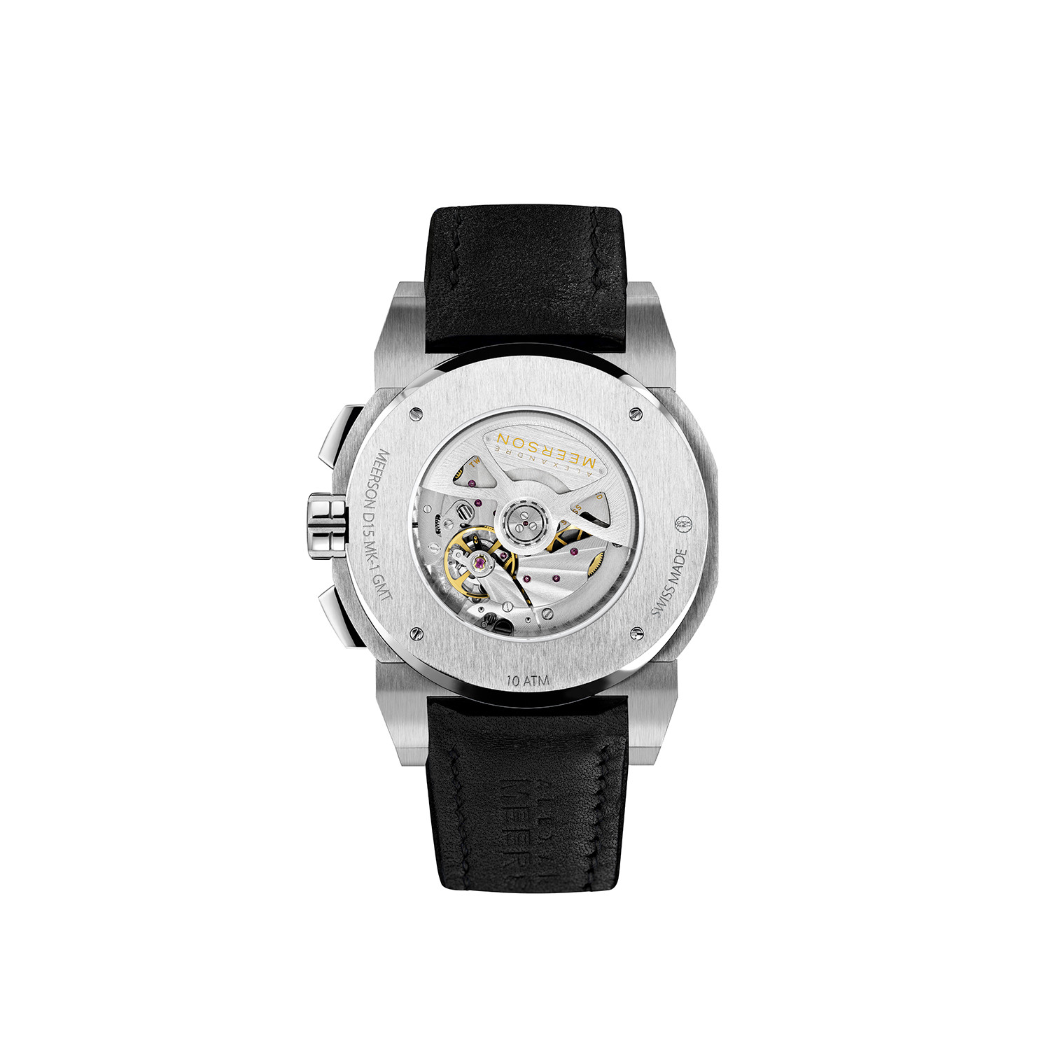 At 44mm in diameter, the Swiss made MEERSON D15 remains understated; with its slim profile and subtle styling it is both a muscular and refined piece. In addition to its trademark geometric styling, the D15 MK-1 GMT carries the signature of the house: sapphire crystal glass gently concaved at the back to fit the wrist like a 'second skin'.The Meerson D15 has been designed by Alexandre Meerson with the modern traveller in mind, in the true spirit of the British Luxury Watch Brand.