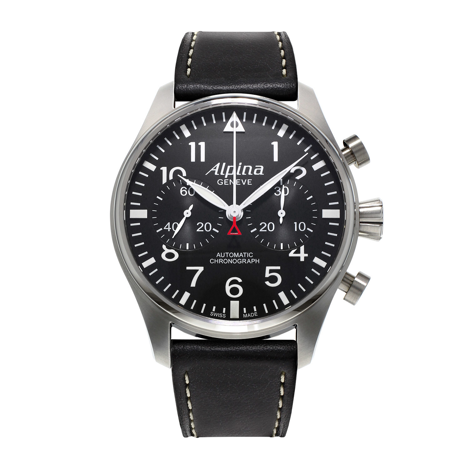 The Startimer Collection was inspired by watches that Alpina made for pilots in the 1920s and 30s. Now, with a fresh take on their own history, they have reinvented the vintage look with high quality materials that can't be imitated. It's a time-honored tradition that can't go wrong with the Alpina Startimer Pilot Chronograph Automatic.