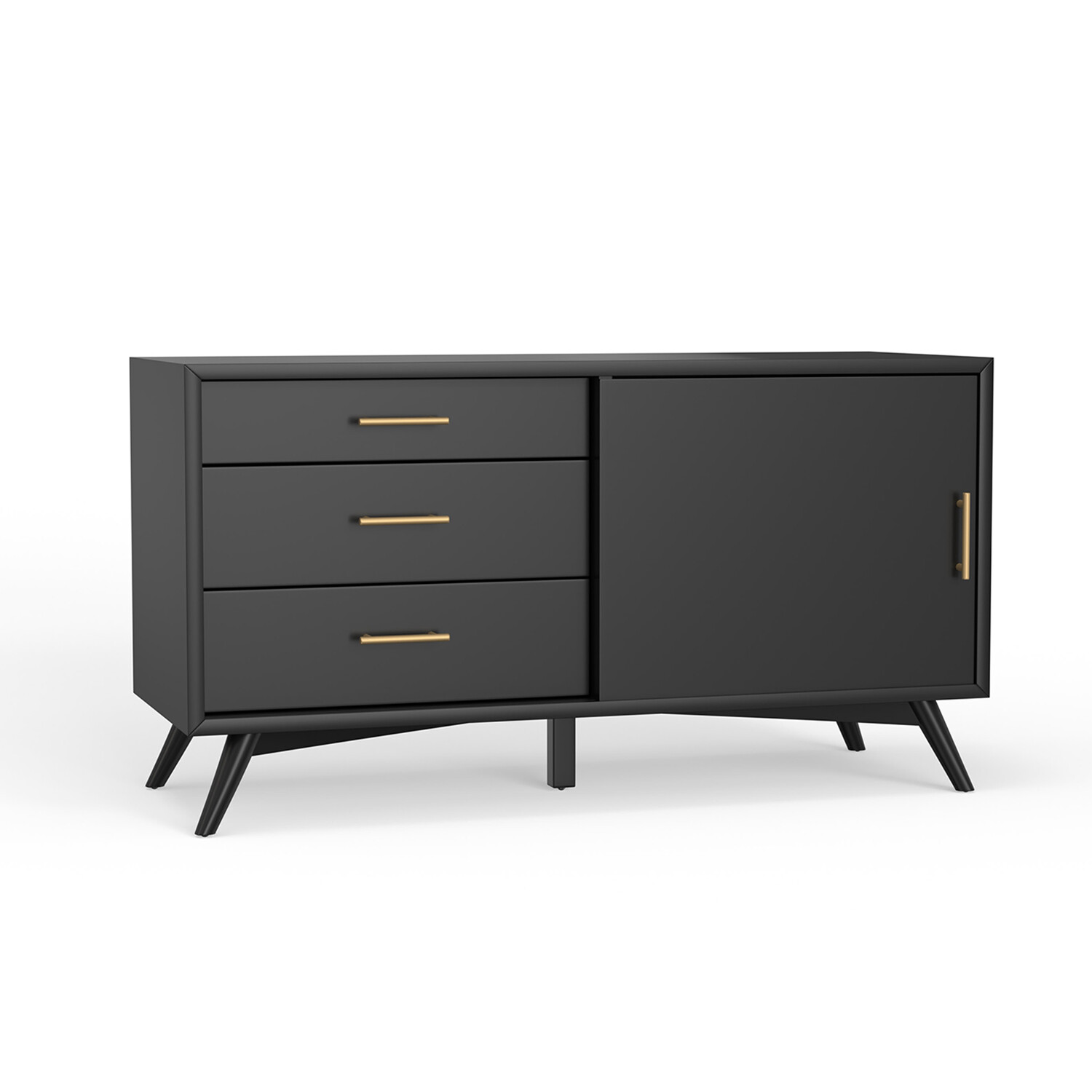 The Flynn Small TV Console features the classic lines of Mid-Century Modern furniture that never goes out of style. Its sturdy frames are built to last, constructed of sustainably sourced solid Mahogany to ensure a lifetime of use. The case pieces provide a roomy storage solution and make it easy to create a cohesive decorating style or mix and match for a more personalized look.