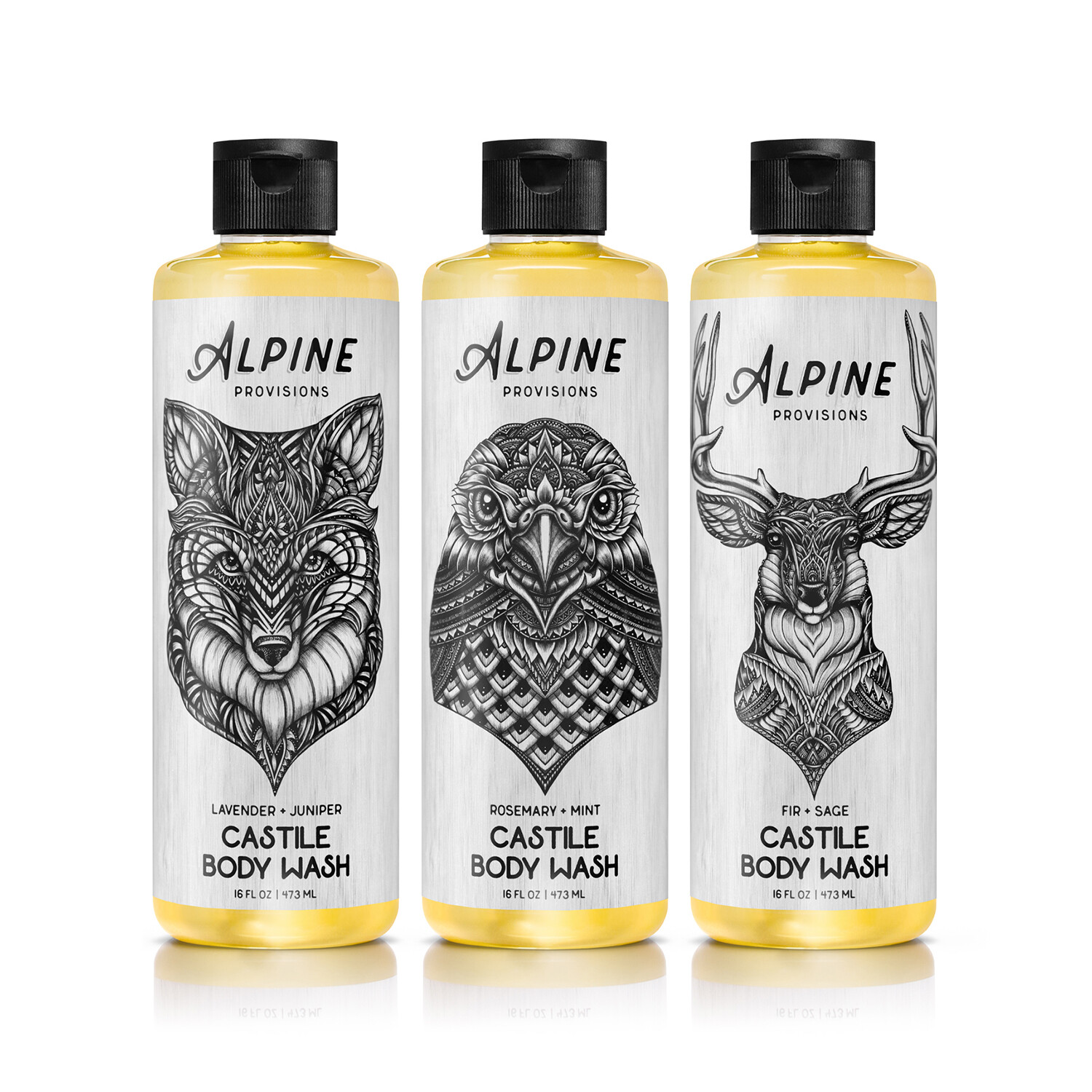 Alpine Provisions Castile Body Wash is truly one of life’s little miracles. Made of a rich combination of organic olive and coconut oils, this super concentrated, highly effective, yet wonderfully gentle cleanser can be used on both skin and hair. Combined with the sustainably-sourced aromatherapy blend, it’s an answer to the call of your skin’s desire to be bathed in untamed wilderness. As powerful as this body wash is, it’s still 100% biodegradable (hello outdoor shower), natural, and sourced with respect for people, planet, and purity.