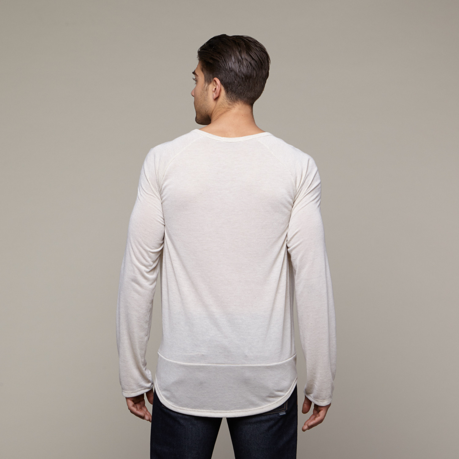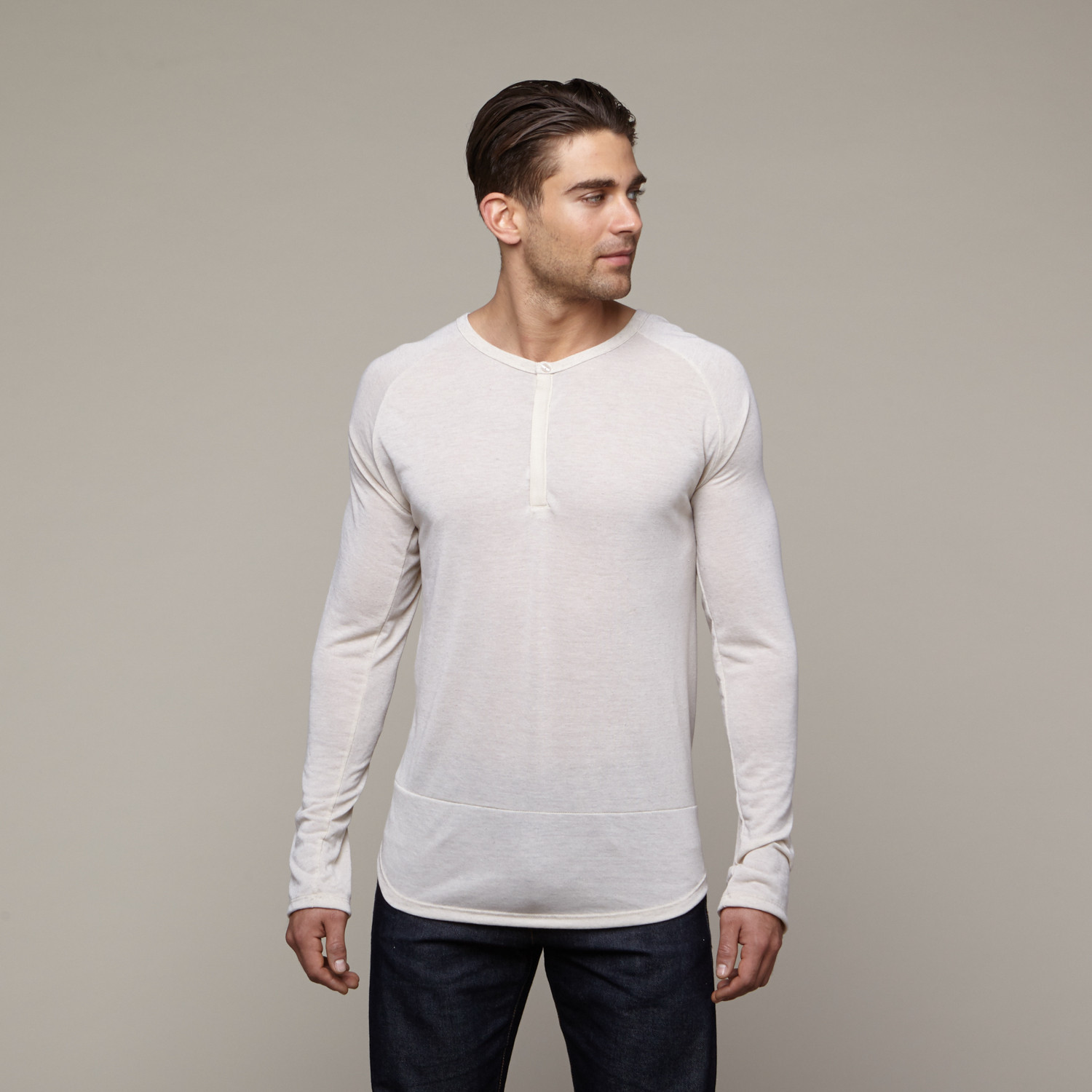 A handsome henley, this Eco-Splash long-sleeve features a rich solid style with scooped bottom hem.