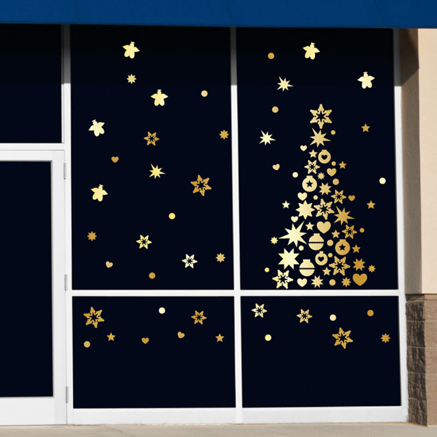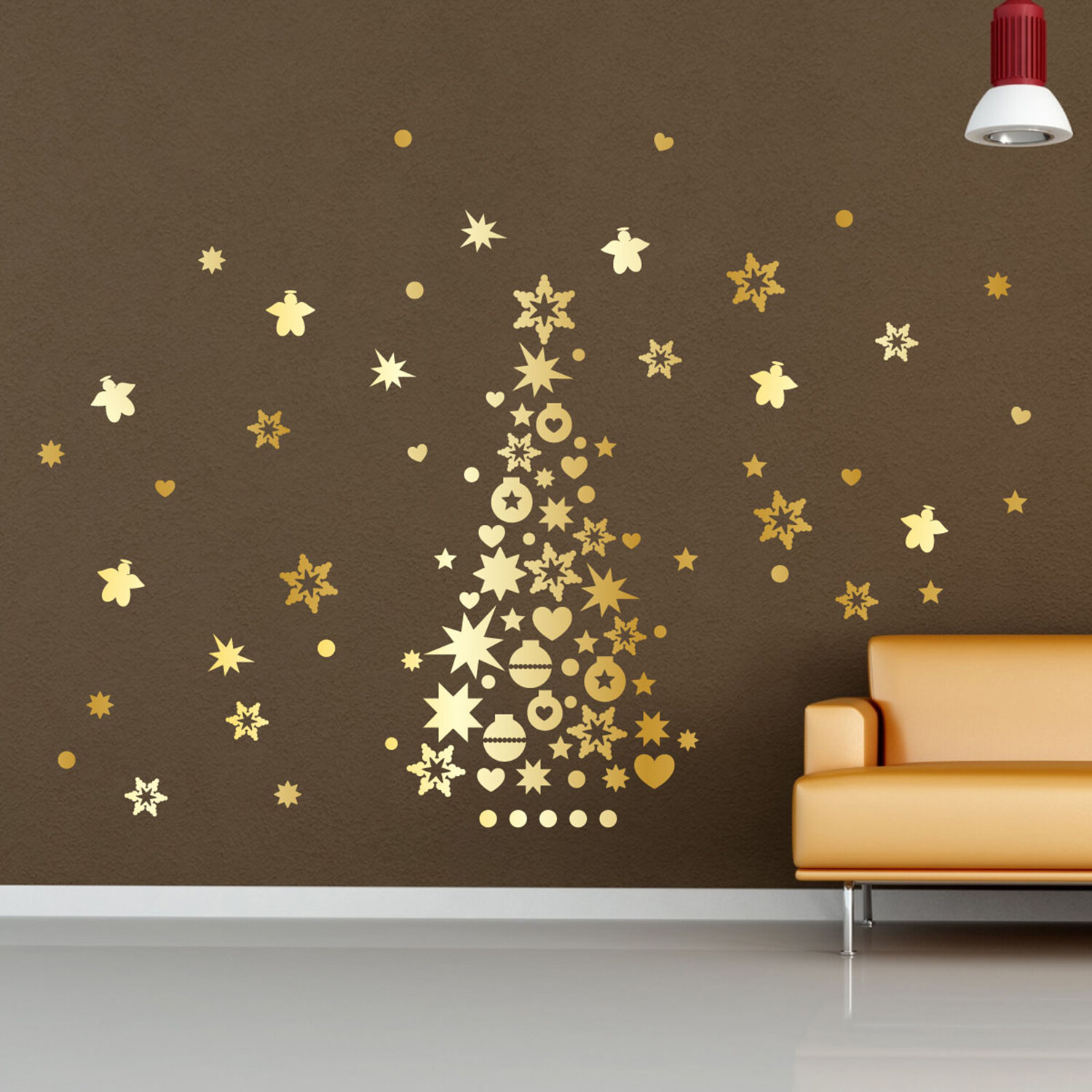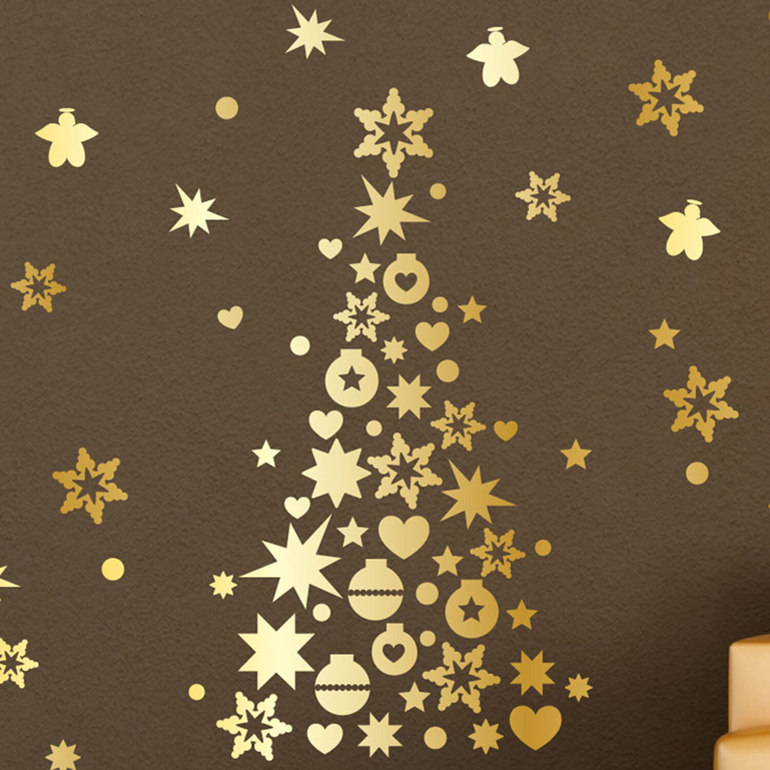 Golden Christmas Tree and Stars Christmas Wall Sticker