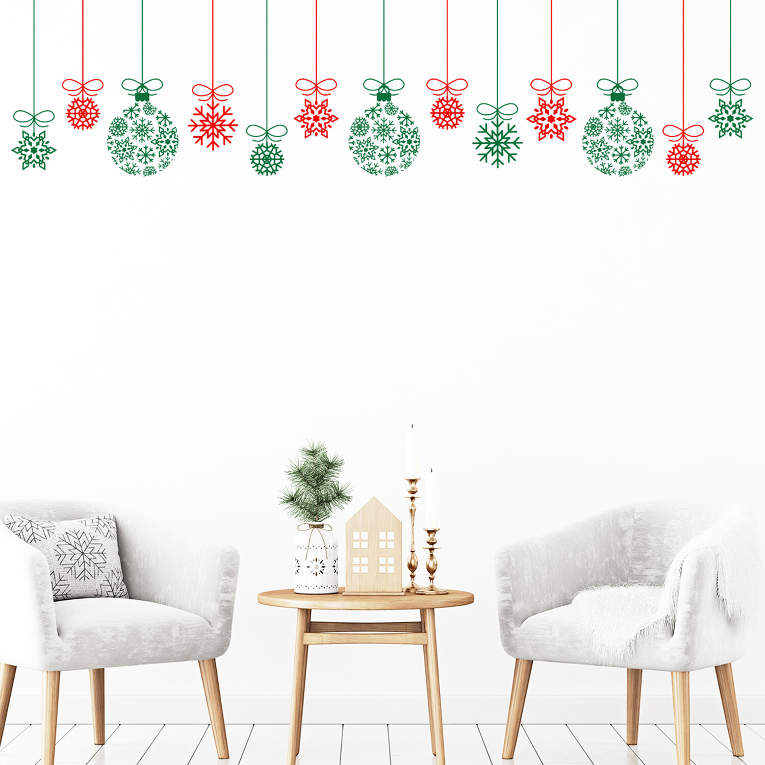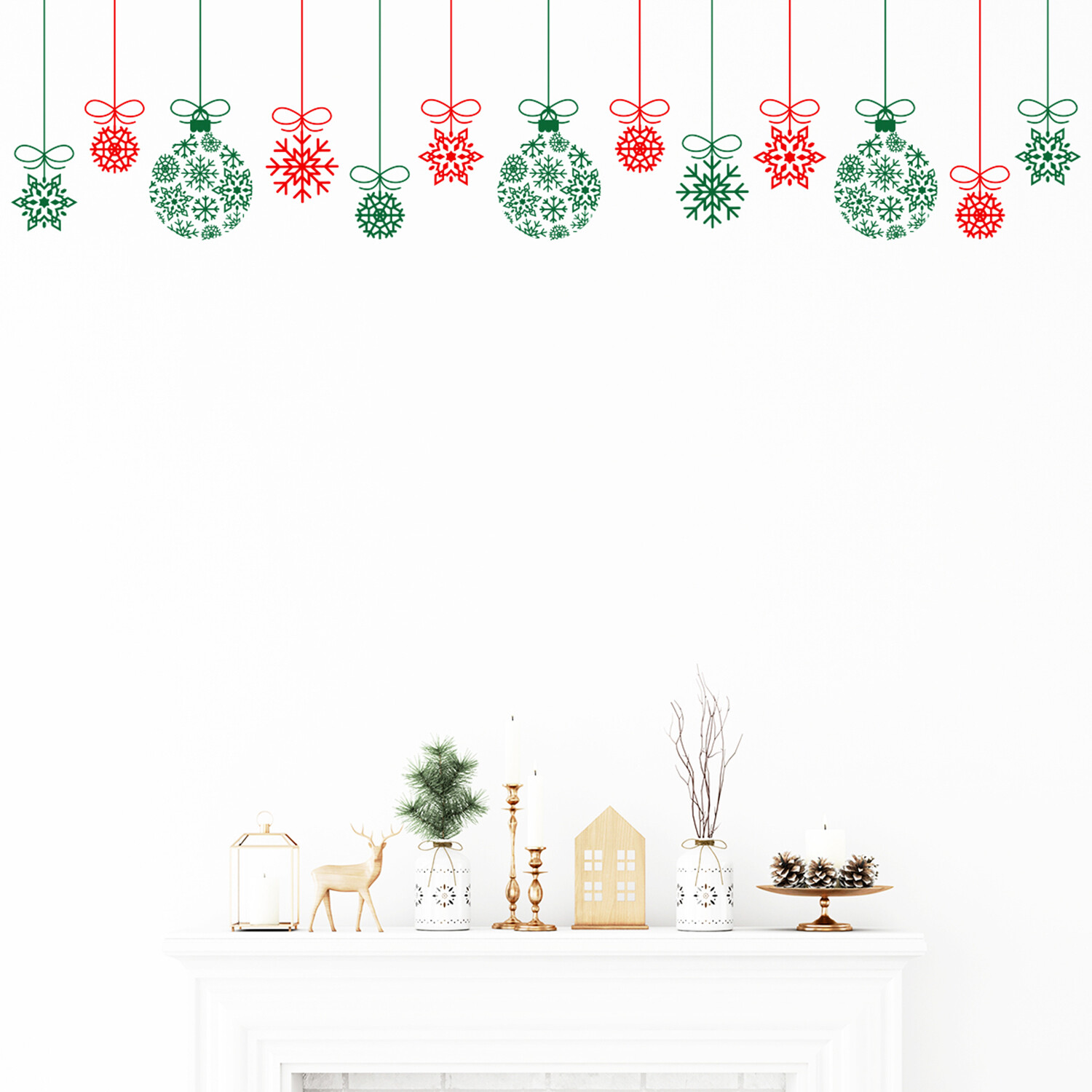 Red and Green Garland and Christmas Balls Wall Sticker