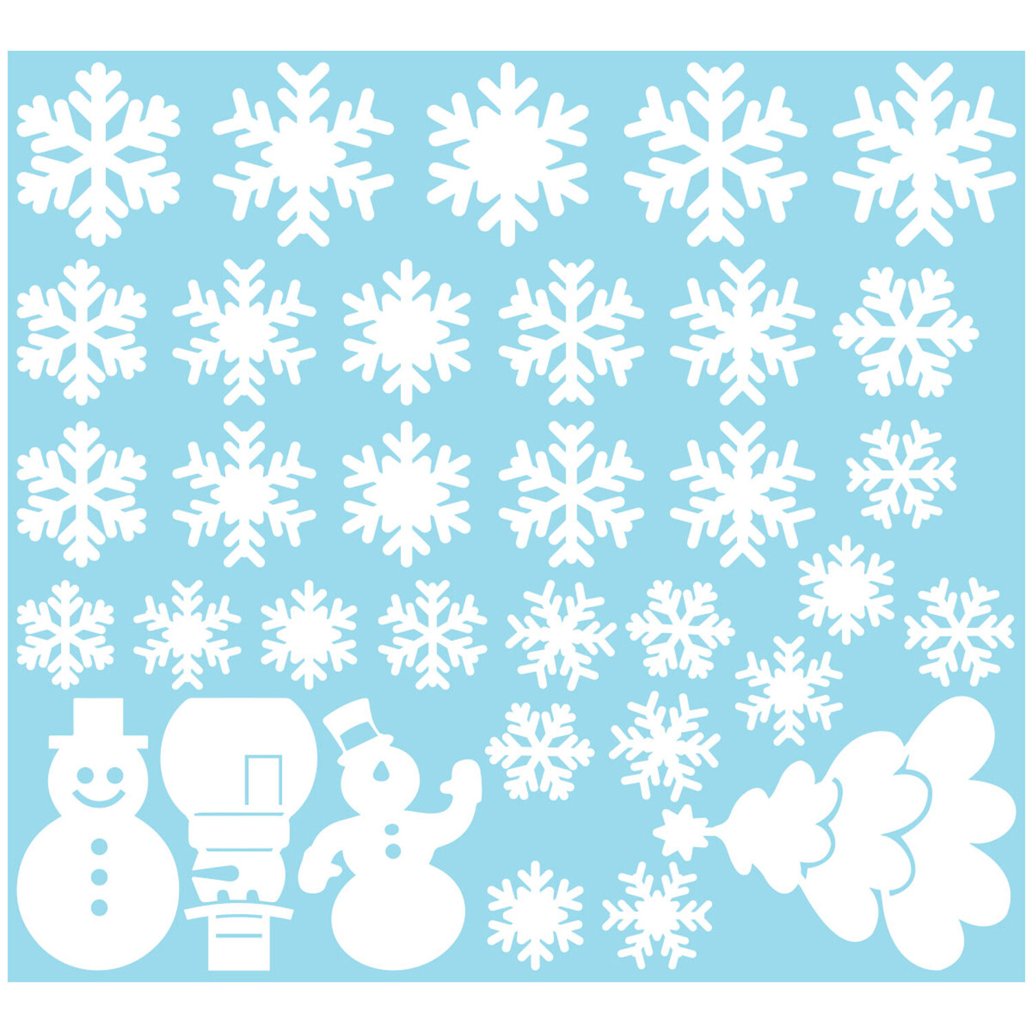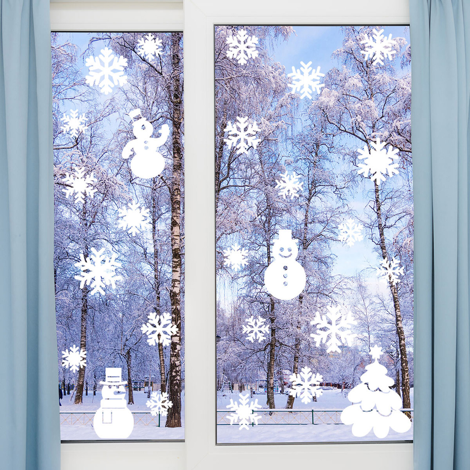 Snowflake, Snowmen and Fir Tree Electrostatic Shiny Christmas Stickers // 30 Pieces
