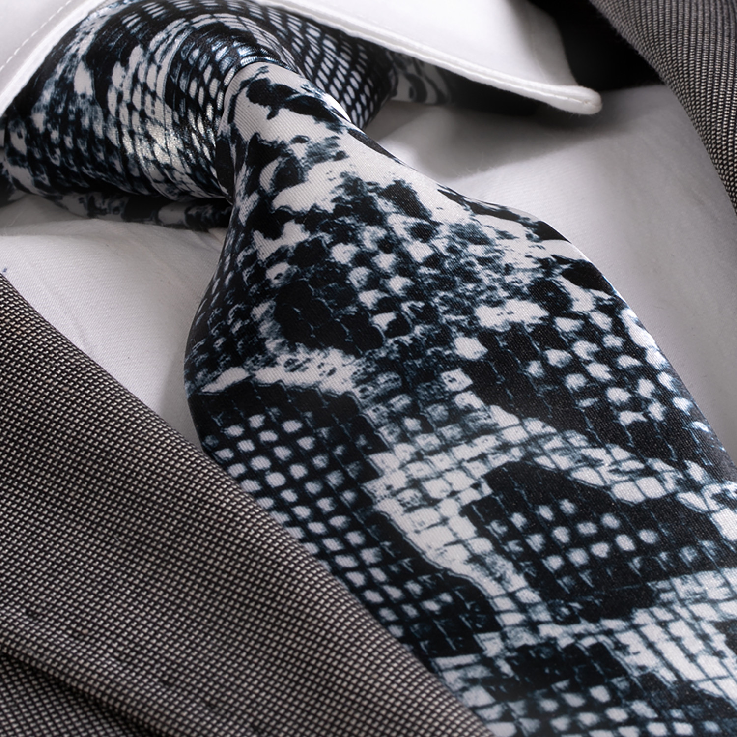 Umbria Tie // Black + White Snake Skin