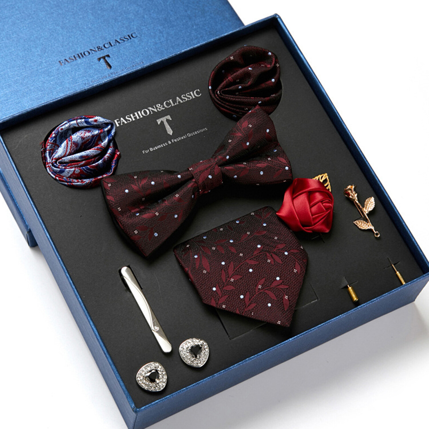 For the guy who wants to look polished and put-together, but hates the all the fuss of accessorizing... we hear you. And we have the perfect solution! This handsome 8 piece accessory set - including a necktie, bowtie, cufflinks, tie clip, lapel pins, and a pocket square - makes dressing up easy. And not only is it the perfect gift for you, its an ideal gift for dad, grandpa, groomsmen... any guy who likes to look his best without all the hassle.
