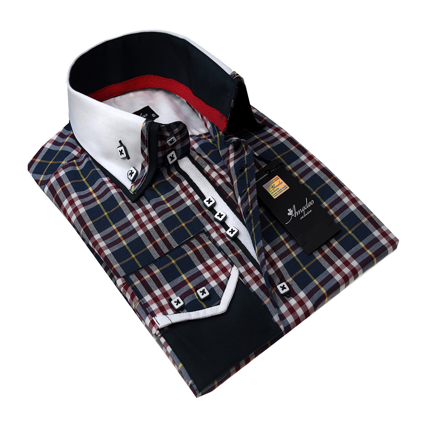 Amedeo Exclusive // Reversible Cuff Button-Down Shirt // Navy Blue Plaid
