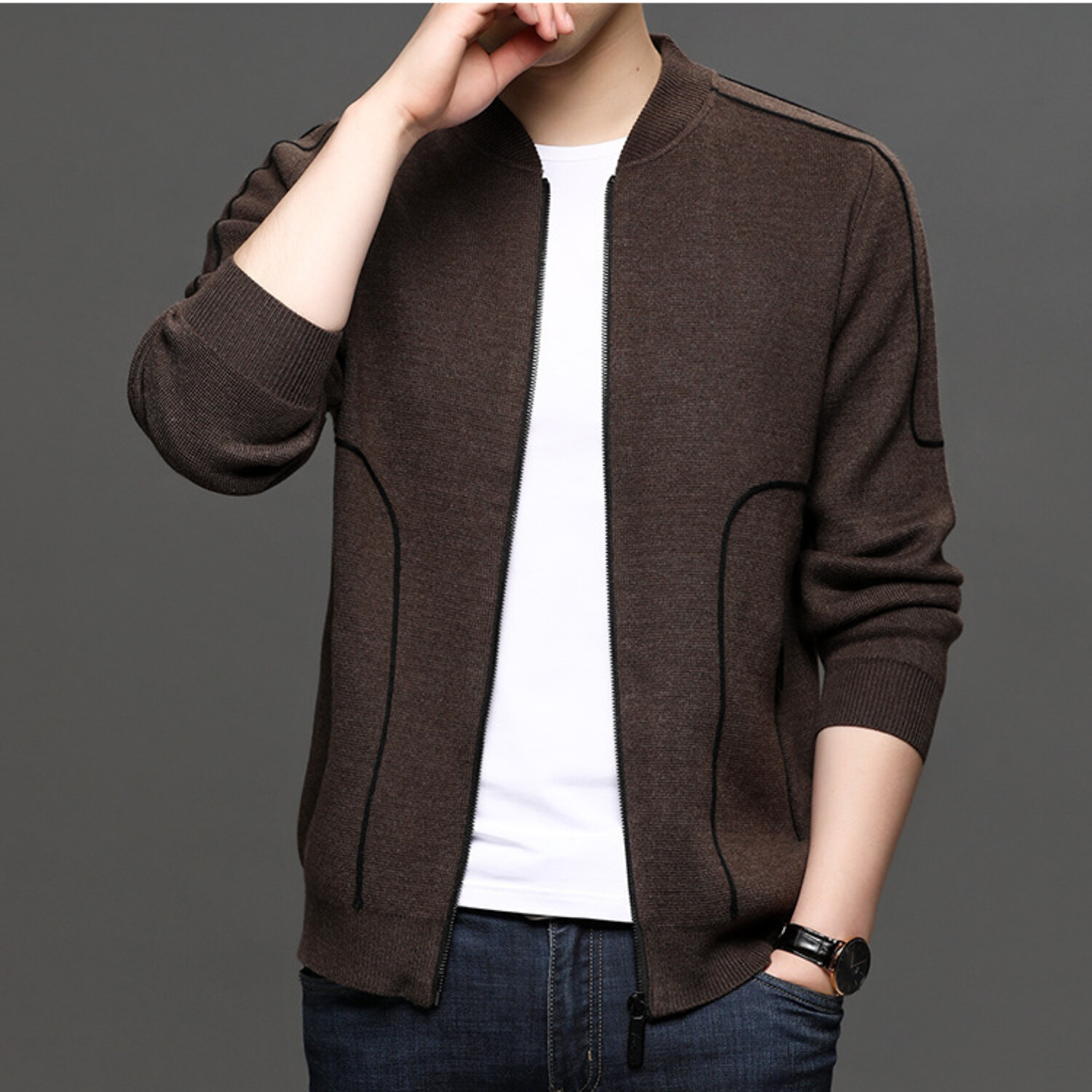 AWZC-015 Zip Up Cardigan // Dark Brown