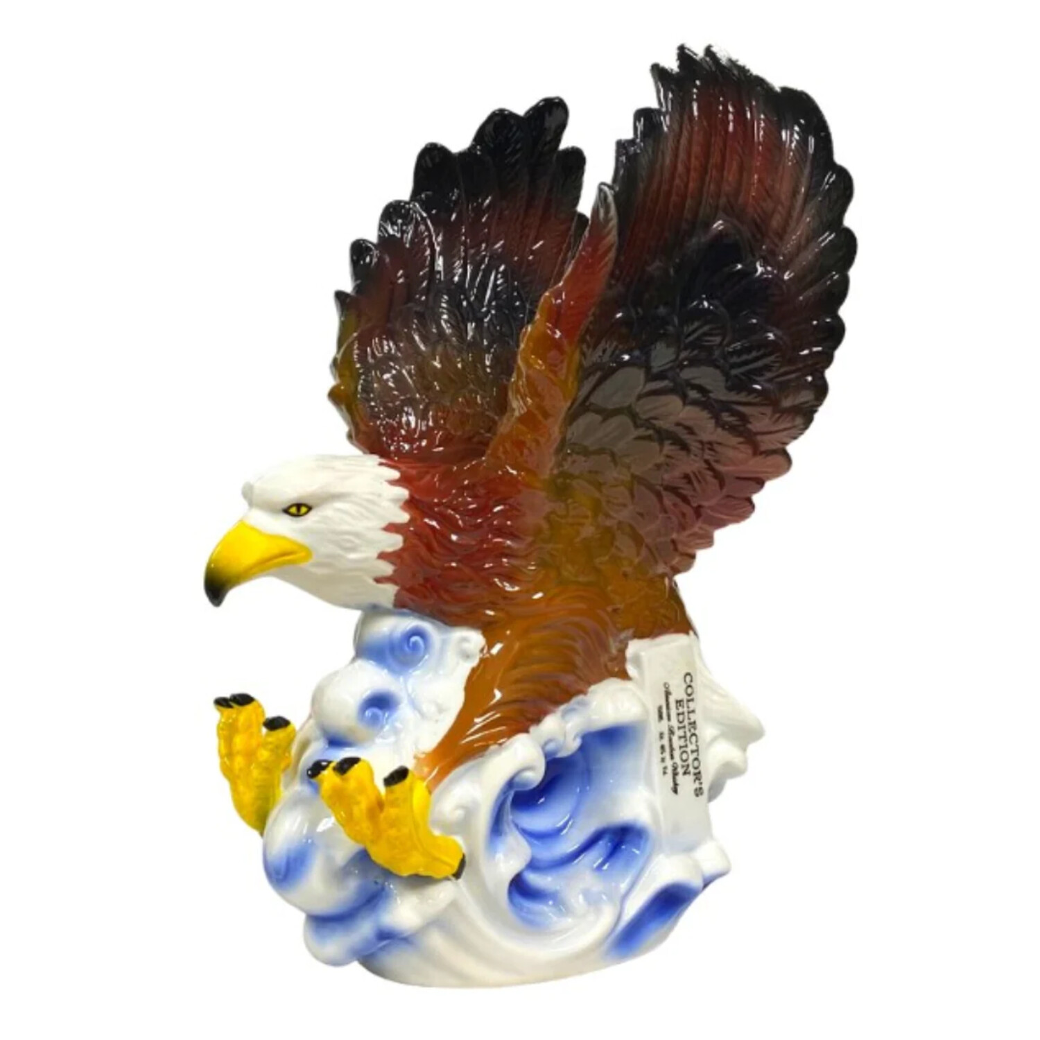 Distilled in Indiana, American Eagle Bourbon Whiskey is a bold spirit made from the sugary kernels of sweet corn. Each batch is aged a minimum of six months in charred oak barrels, where it takes on a deep amber shade along with a nose and flavor like caramel corn. Bottled in hand-painted ceramic American Eagle decanter, it's the perfect choice to bring big flavor and classic Americana to your bar.