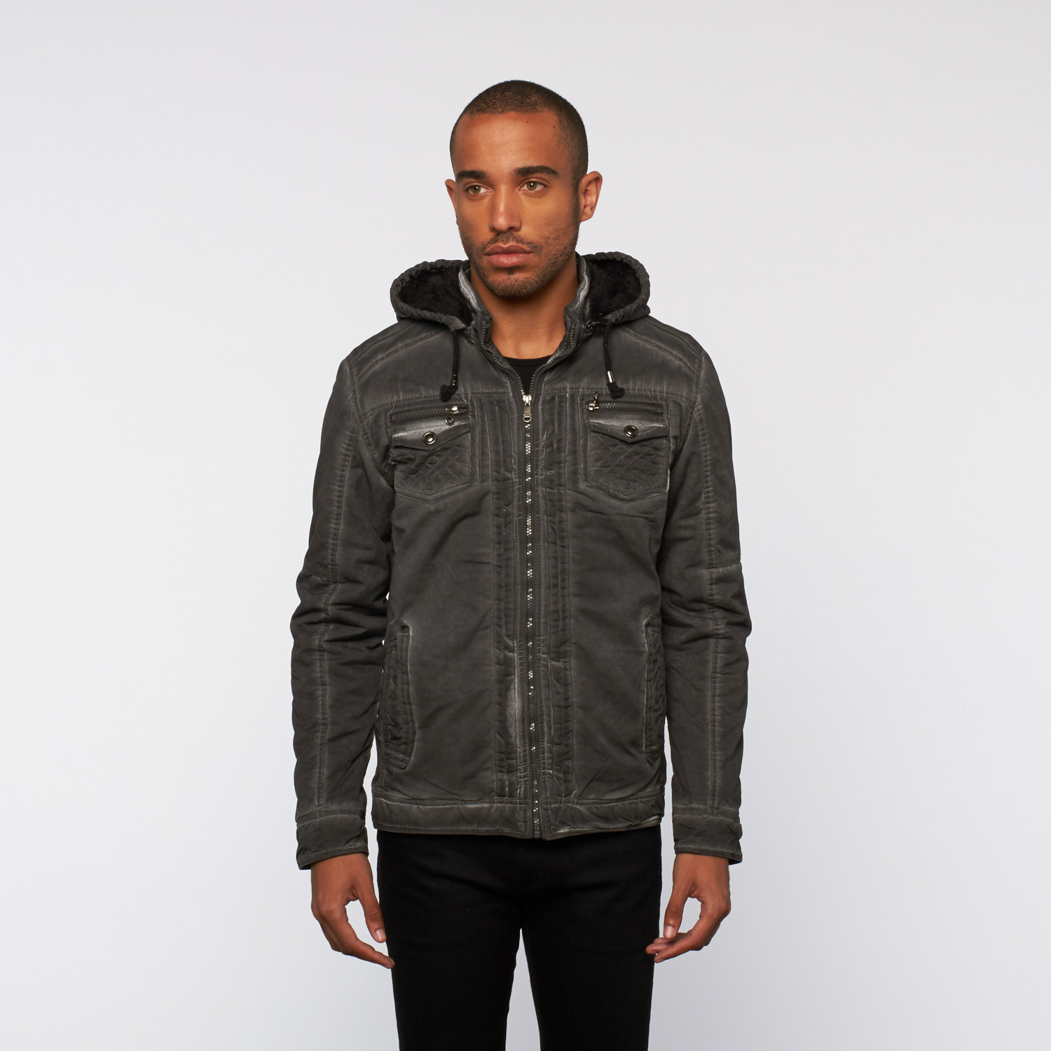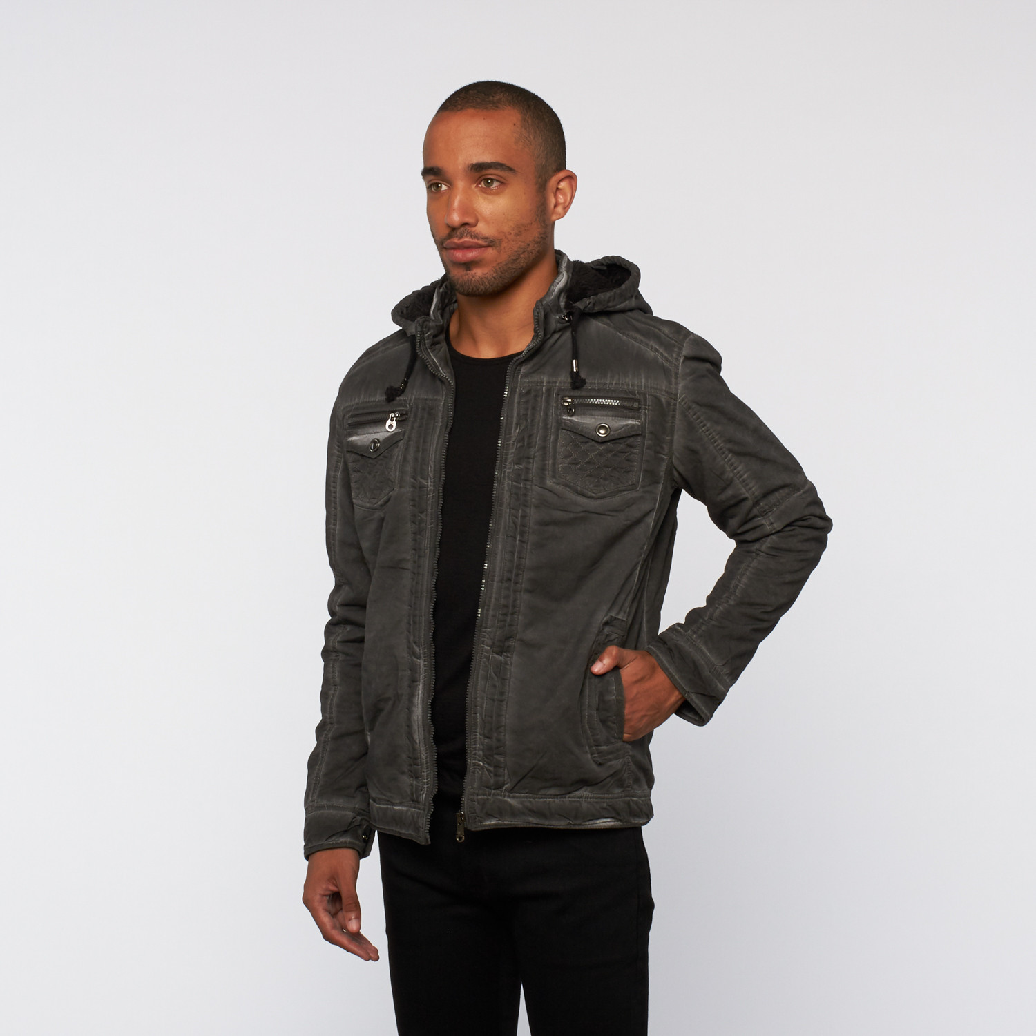 This Burnout Cotton Jacket is a fantastic transition piece to take you from Summer to Fall. This casual piece of outerwear features a burnout cotton exterior, a faux fur lined hood, and zip and snap pockets for an elegant, street-smart look.