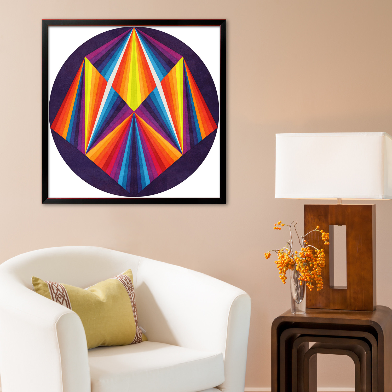Beautifully framed in real wood, this piece by Anai Greog is an exercise in vivid colors, and blended textures, as well as a challenge for your eye and your imagination. Bold and abstract, this unique print will always offer you something new every time you see it.