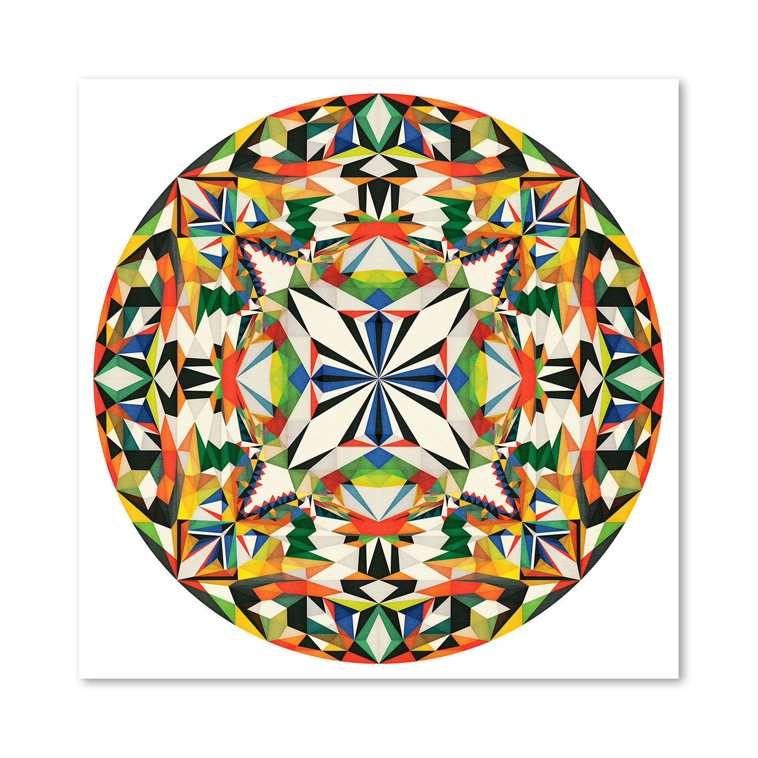 A complex, colorful, and dynamic geometrical whirl encased in a spherical border, Don't Believe It plays with control and release, and will make a fine focal point for any space. This giclée art print is a perfect addition to your bourgeoning art collection.