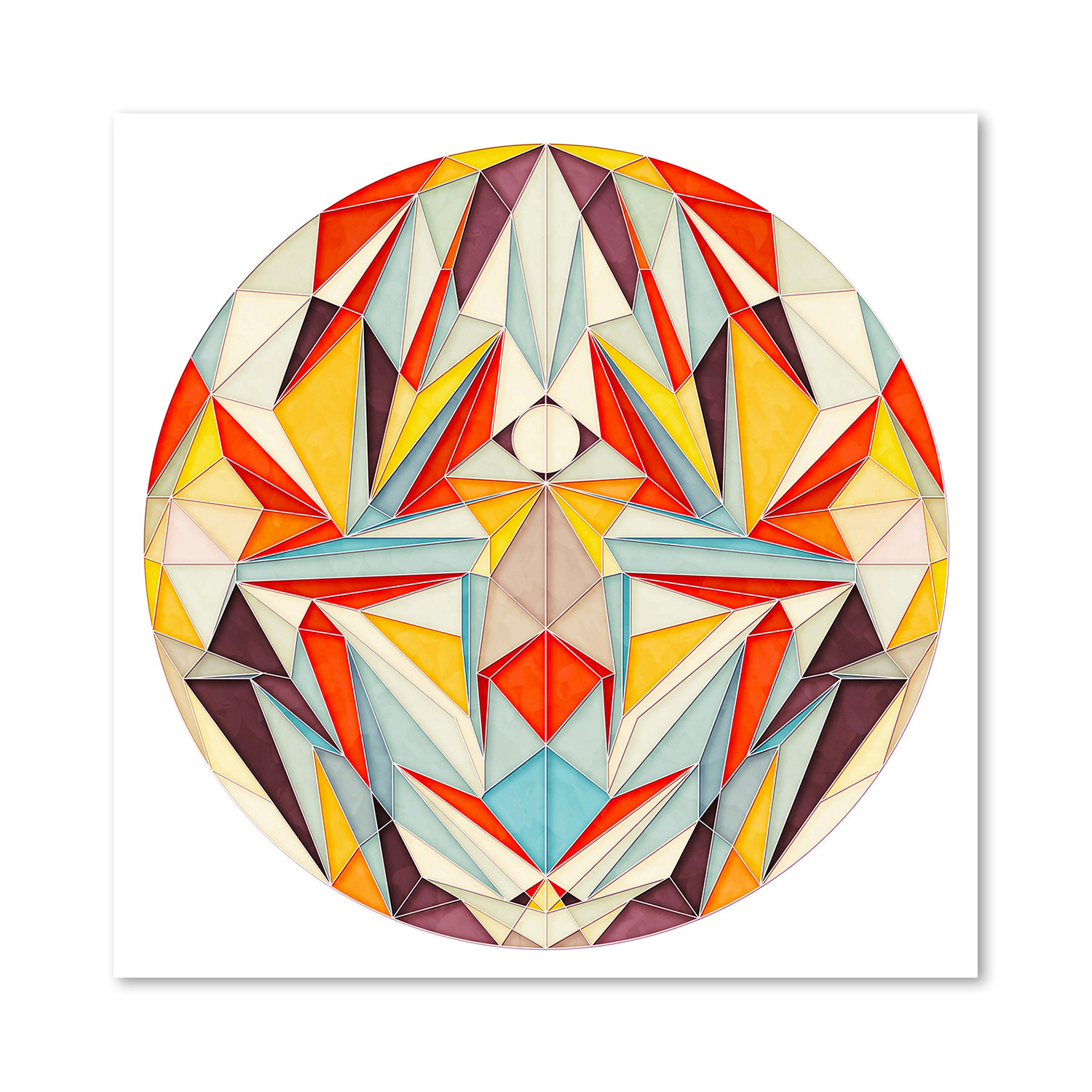 A complex, colorful, and dynamic geometrical whirl encased in a spherical border, Everything Is Fine plays with control and release, and will make a fine focal point for any space. This giclée art print is a perfect addition to your bourgeoning art collection.