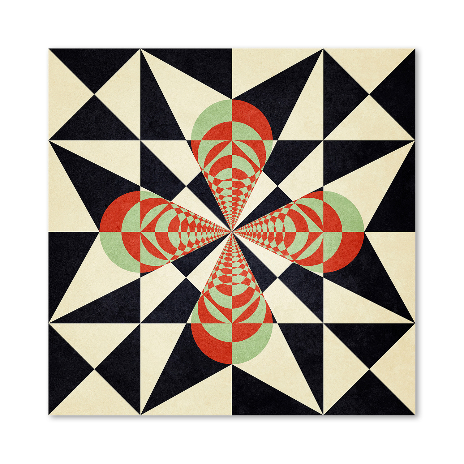 A complex, colorful, and dynamic geometrical whirl encased in a spherical border, Misconceptions of the Courageous Mind plays with control and release, and will make a fine focal point for any space. This giclée art print is a perfect addition to your bourgeoning art collection.