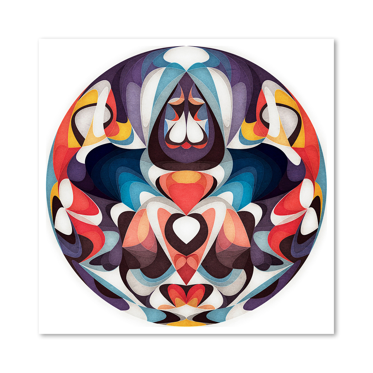 A complex, colorful, and dynamic geometrical whirl encased in a spherical border, Really plays with control and release, and will make a fine focal point for any space. This giclée art print is a perfect addition to your bourgeoning art collection.