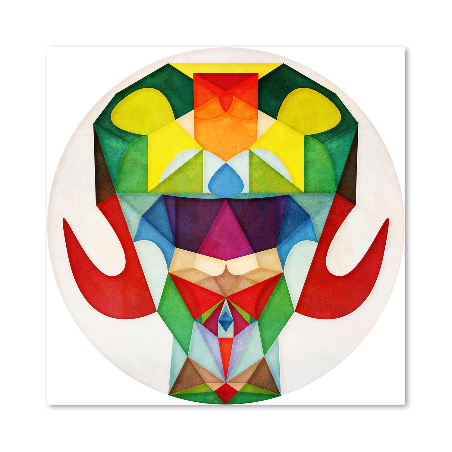 A complex, colorful, and dynamic geometrical whirl encased in a spherical border, Sorry for That plays with control and release, and will make a fine focal point for any space. This giclée art print is a perfect addition to your bourgeoning art collection.