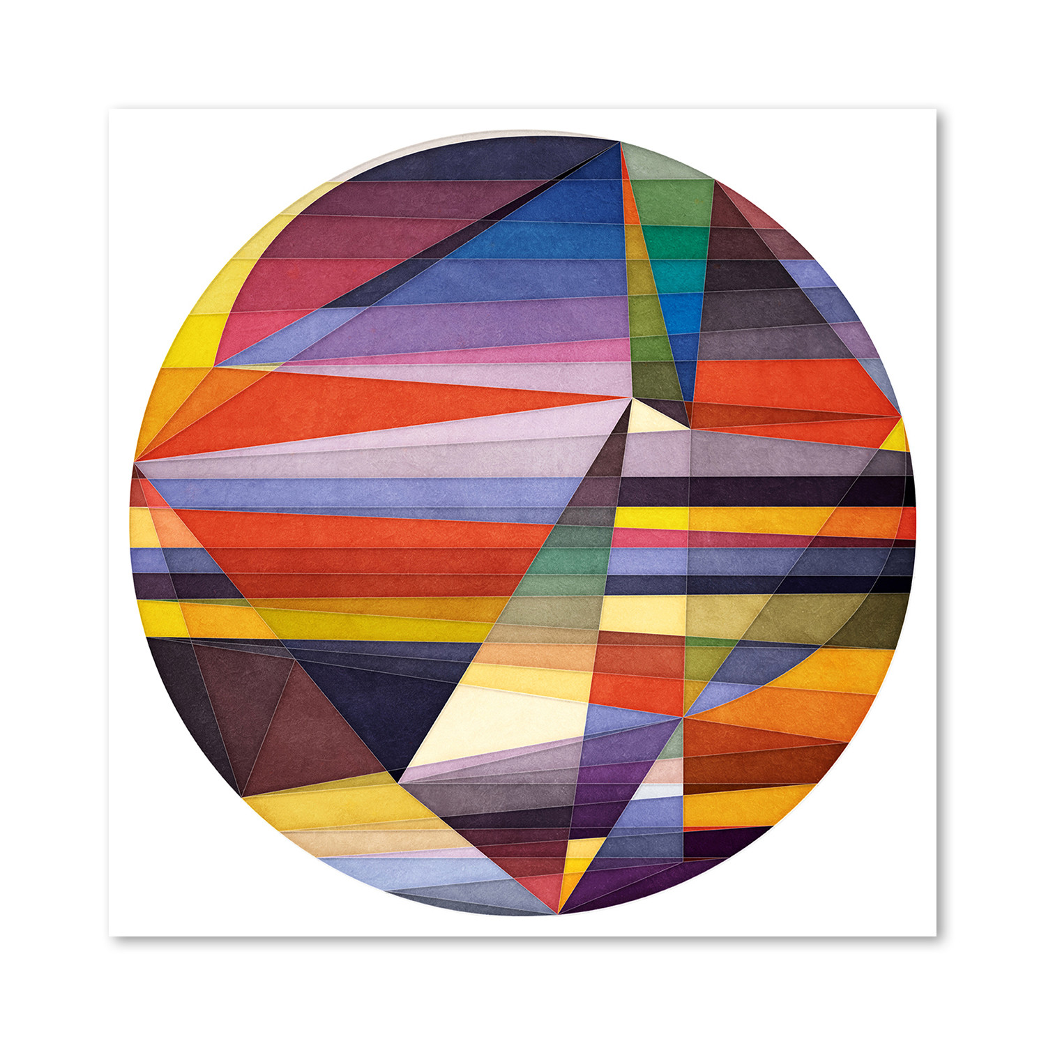 A complex, colorful, and dynamic geometrical whirl encased in a spherical border, You Were Trying Too Hard plays with control and release, and will make a fine focal point for any space. This giclée art print is a perfect addition to your bourgeoning art collection.