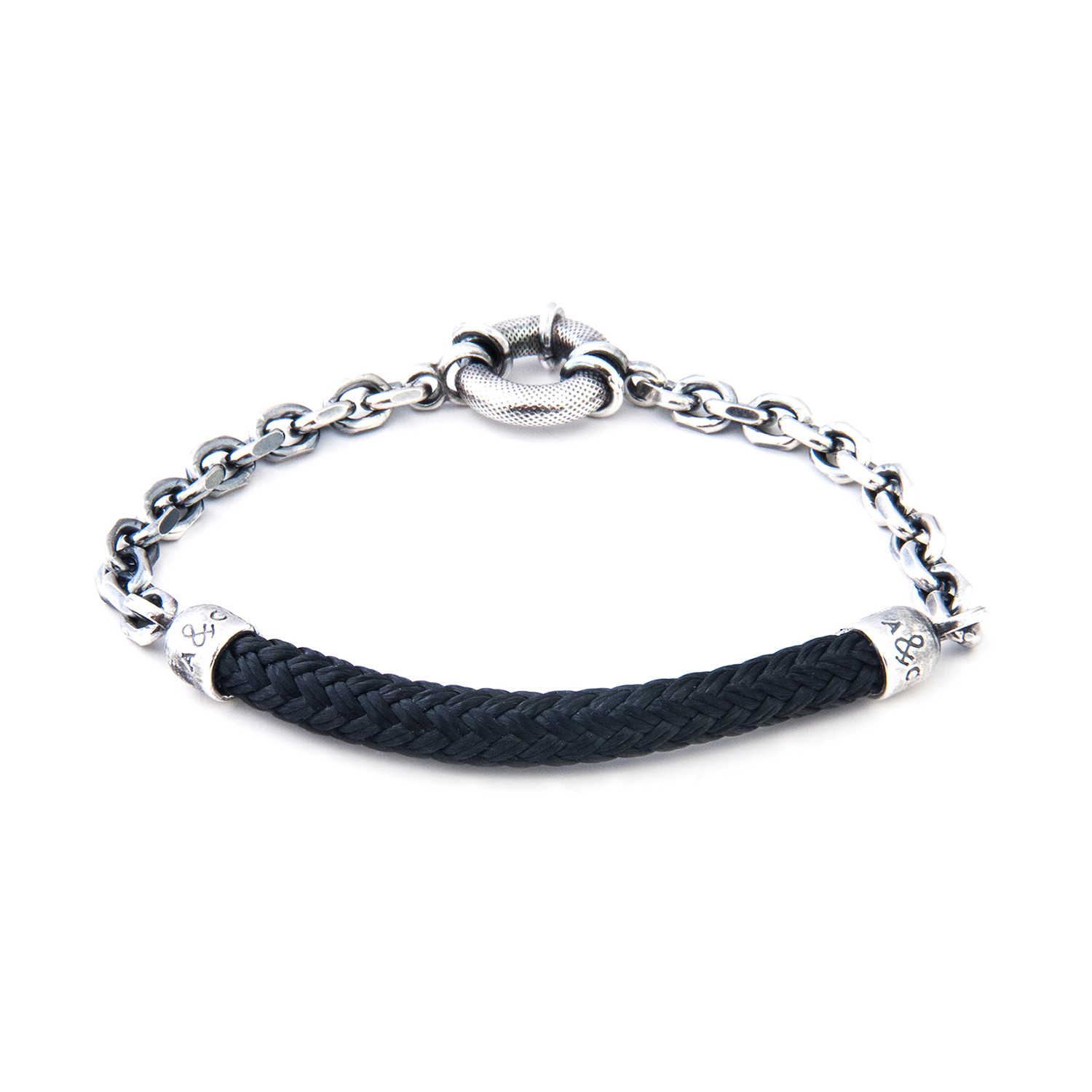 The Derry Bracelet was both designed and skillfully handcrafted completely in Great Britain. Inspired by mechanical and nautical objects, the Derry Bracelet features marine grade polyester and nylon rope as well as solid sterling silver details.