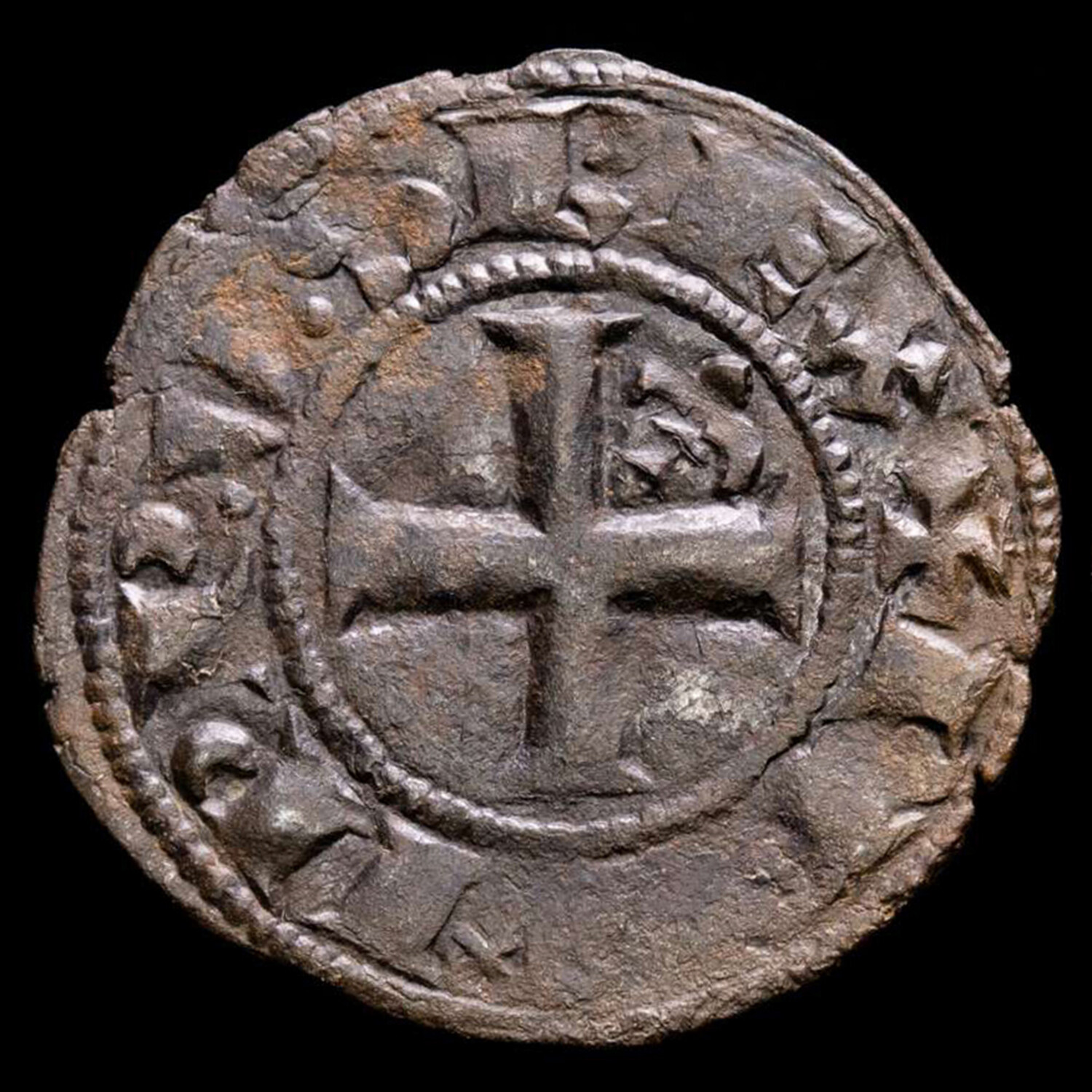 Knights Templar France. Philippe IV “le Bel”, 1285-1314 AD. Billon Double Tournois, Tours mint. First issue struck 1295-1303 AD. Crusader cross with fleur-de-lis in one quarter, + PHILIPPVS REX / Castle tournois between two fleur-de-lis, + MON DVPLEX REGAL. ref: Duplessy 229, L: 234 for type. Measures 21mm, weighs 0.98 grams, with sharp, deep-struck detail! Dark, nearly black patina. Ex Alcala la Real, Spain collection. ** Struck during the height of power and glory of the Knights Templar, and supported their establishment of the world's first banking system for pilgrims traveling to the Holy Land and back. Once the patron king and greatest supporter of the Knights Templar, on Friday, October 13, 1307, Philip IV had hundreds of members of the order arrested in France and tortured until admitting heresy. Some died under torture, many were burned at the stake. Thereafter, Friday the 13th has become synonymous with bad luck and evil.Accompanied by a hand-signed certificate of authenticity which includes all the details, culture, dating, motifs/inscriptions when applicable, historical relevance, and provenance.