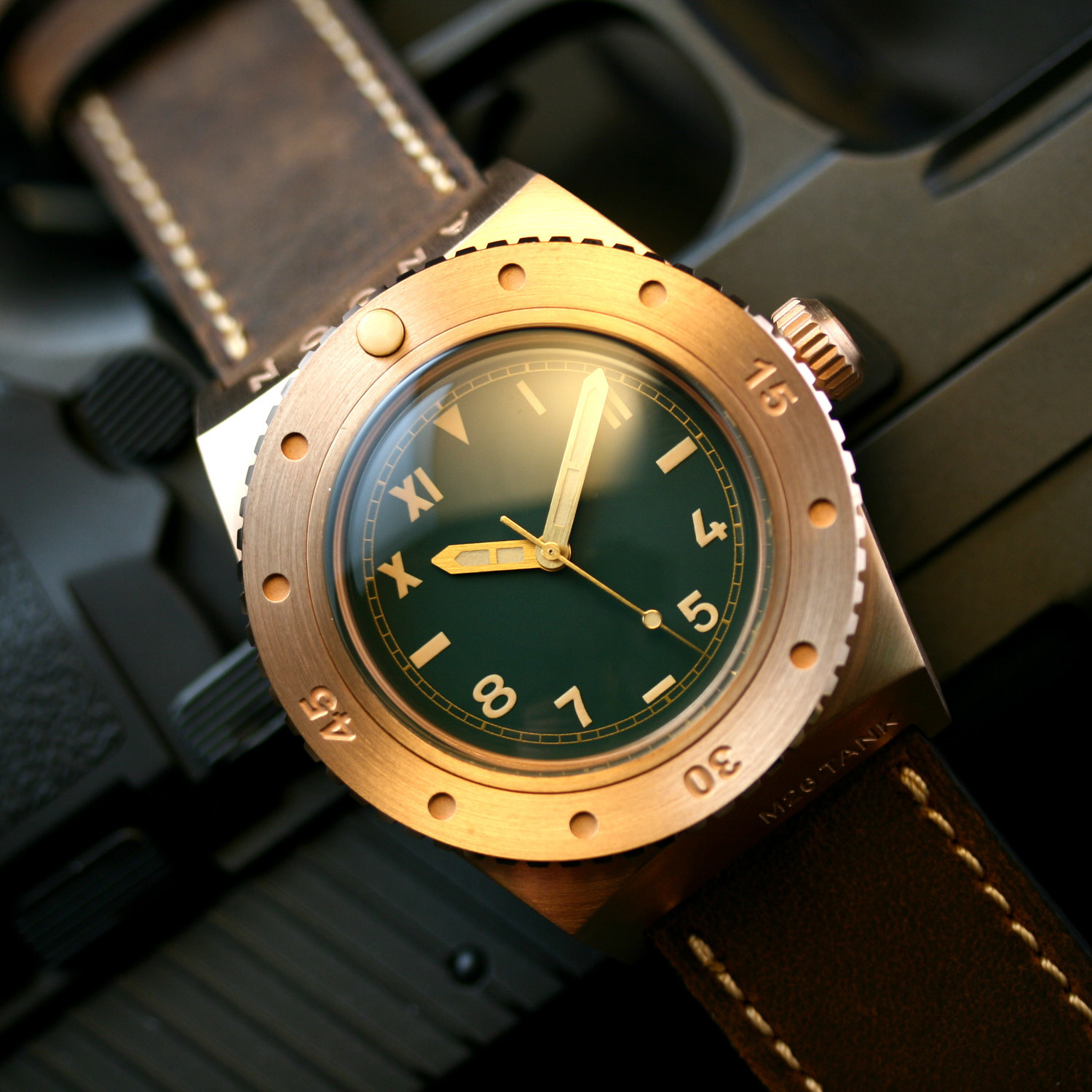 The bronze age is here again, ushered in by incredible watches just like the M26 Tank Mark III. If you're sick of stainless steel, this is the brushed bronze case that you've been craving, containing powerful details from a 42 hour power reserve to a 24-jewel Miyota 90S5 automatic movement. Strap it to your wrist and enjoy ushering in a new era of aesthetics.