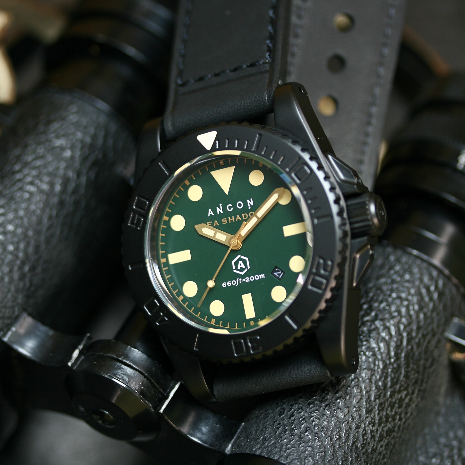 The Ancon Sea Shadow lines are inspired by the ANCON AGC-4 Amphibious Force Command Ship. To pay tribute to this magnificent warship, the Sea Shadow in military green includes unique characteristics, like the Miyota automatic movement chosen for its accuracy and reliability.