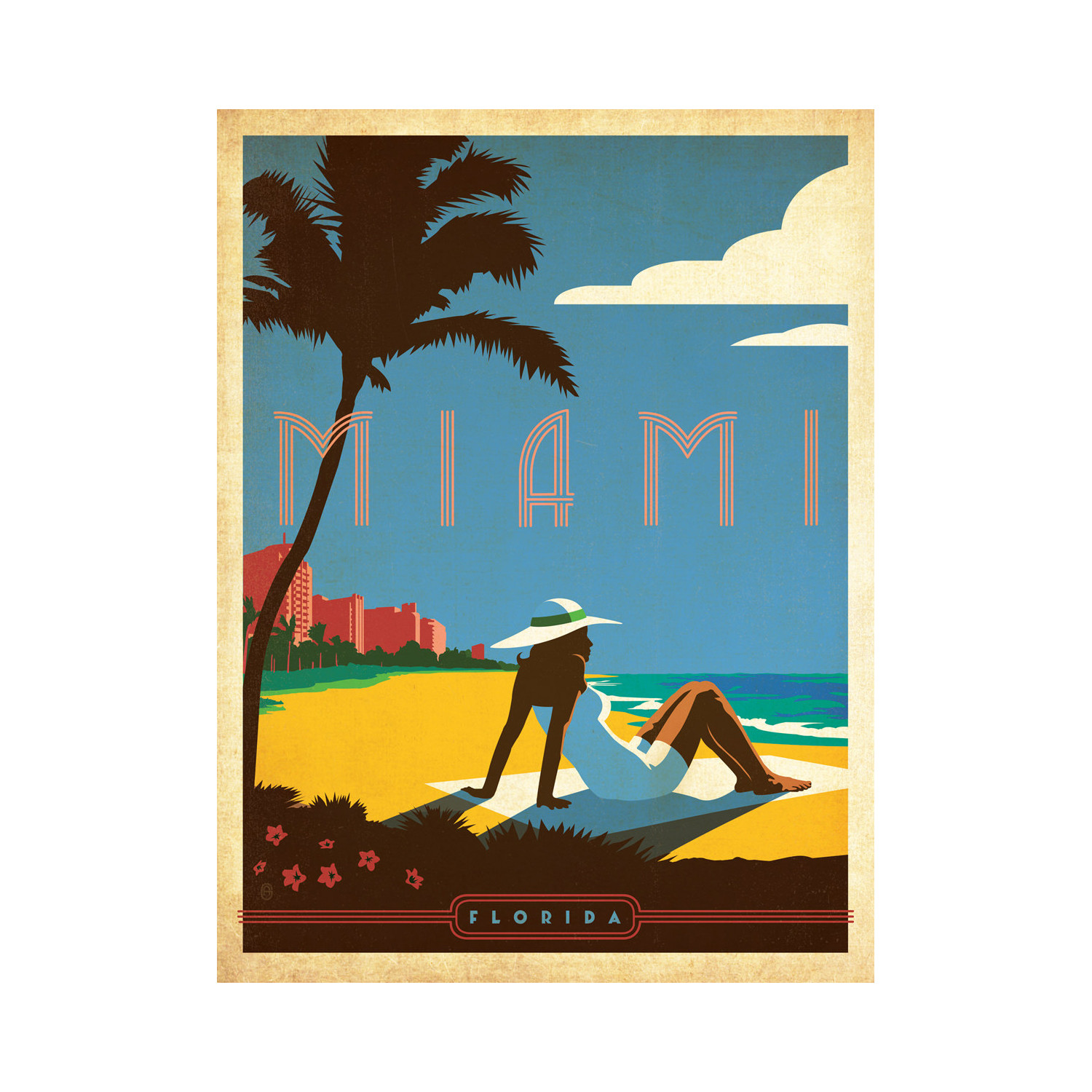 This classic print from Anderson Design Group in Nashville celebrates your home with this Miami, FL print, perfect for families, sports fans, and alumni who can look at this print and think of home. Printed on gallery-grade matte-finished paper, this piece will add nostalgic charm to any home or office wall.