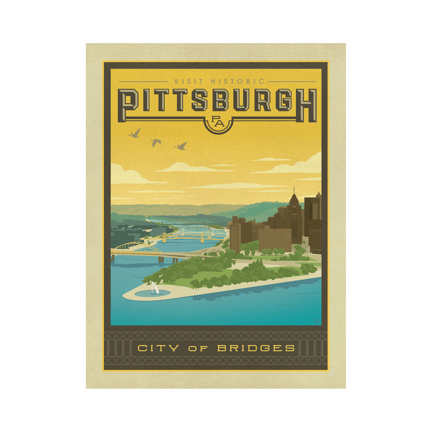 This classic print from Anderson Design Group in Nashville celebrates your home with this Pittsburgh, PA print, perfect for families, sports fans, and alumni who can look at this print and think of home. Printed on gallery-grade matte-finished paper, this piece will add nostalgic charm to any home or office wall.