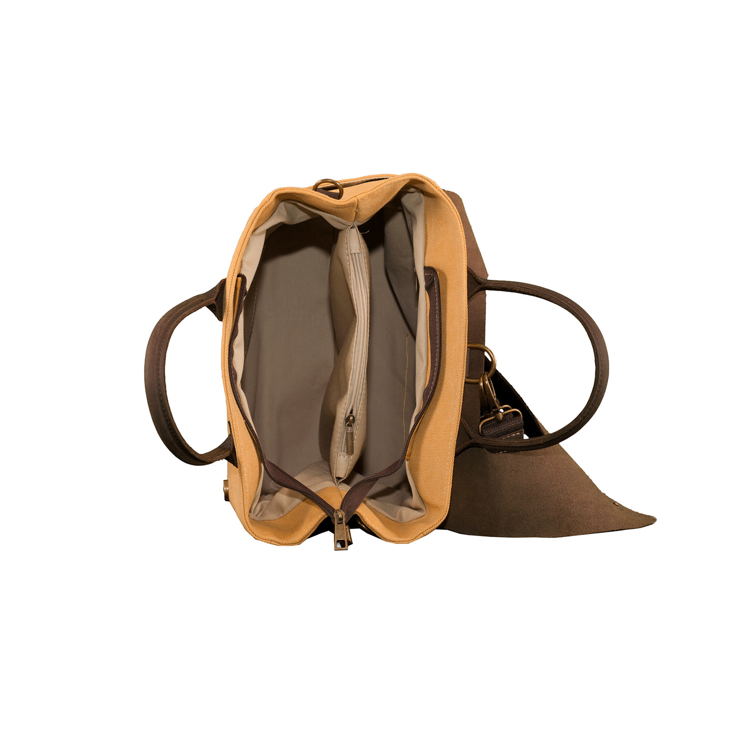 This stylish backpack is made of high-quality canvas and leather, with a unique color combination, so it stands out from the crowd, while still being functional and durable. With easy-grip round handles or rugged backpack straps and two separate interior pockets, there's almost nothing it can't carry.
