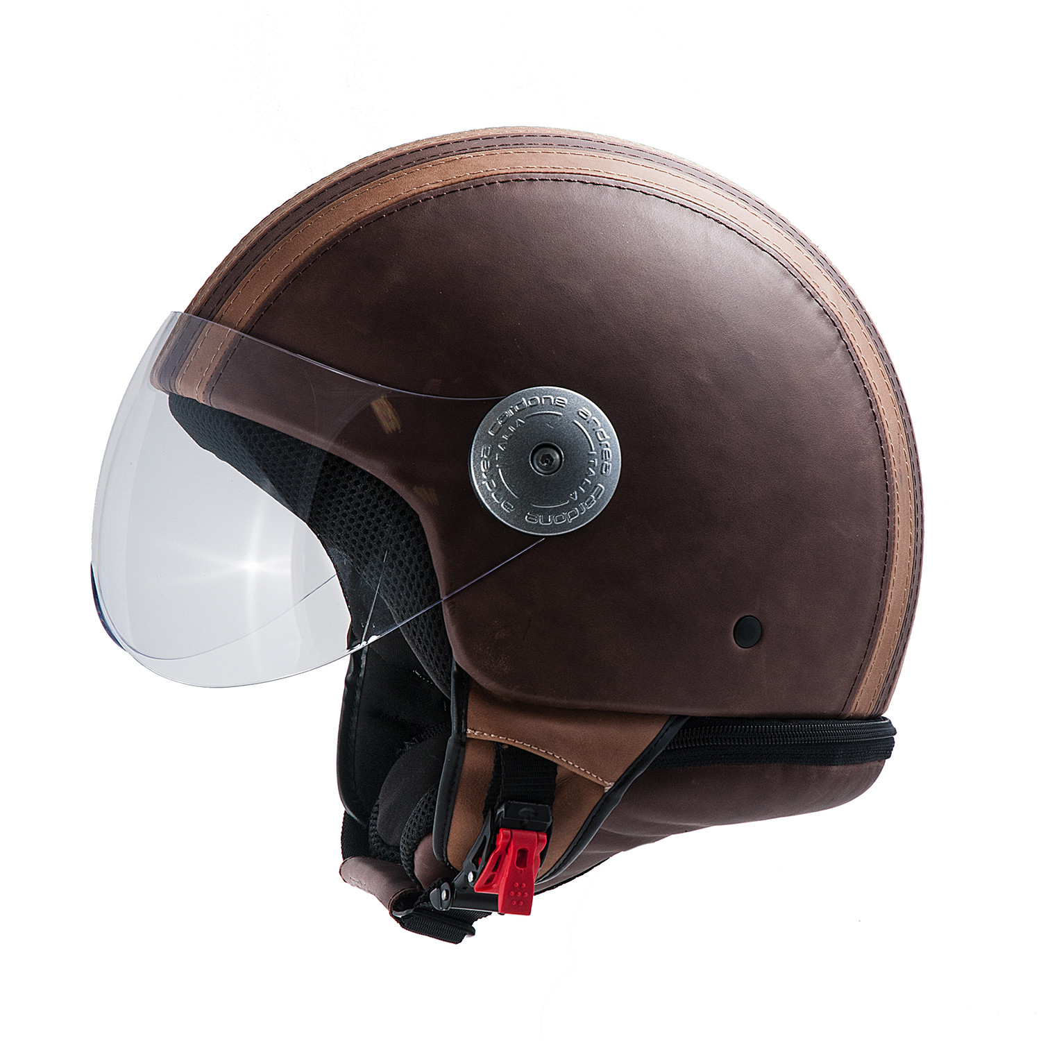 Made of extra-tough ABS plastic with a genuine, scratch and water-resistant leather cover and breathable, anti-allergen velvet lining, this Leather Helmet offers the perfect pairing of safety and style. Andrea Cardone carefully crafts each and every helmet by hand in its Neapolitan workshop, drawing on over 50 years of experience in the Italian leatherwear industry to bring you retro accessories fully tested to meet rigorous EU safety standards.