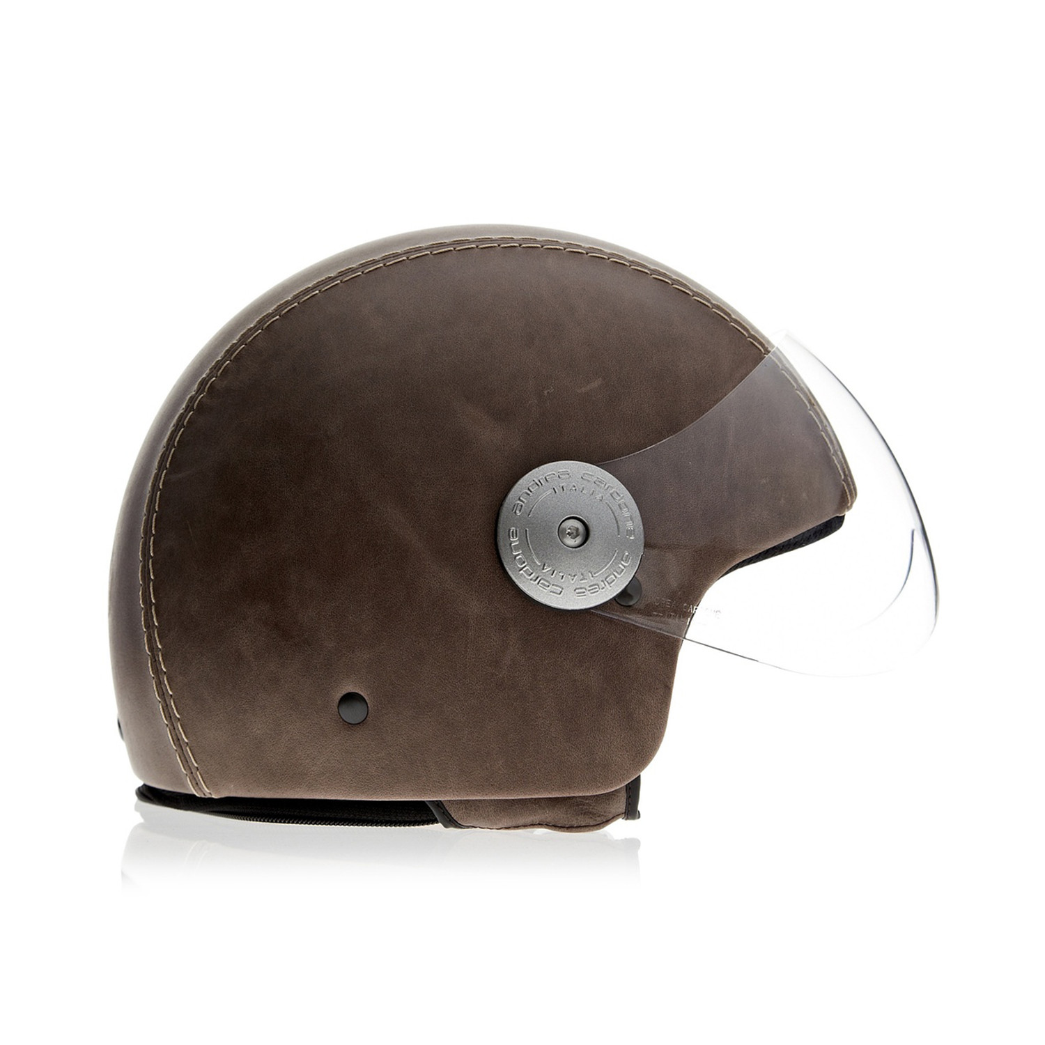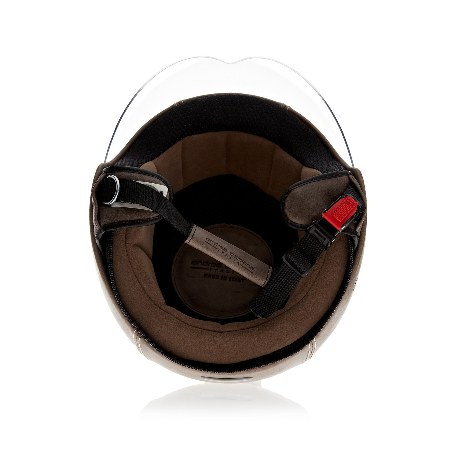 Take to the open road with this vintage leather helmet—a gorgeous ABS and custom leather protector for motorcyclists. This helmet is done in a pared-down design to showcase the quality of its leather, which is scratch and water-resistant. The lining has breathable, anti-allergen velvet material and the entire helmet design was rigorously tested to meet European ECE safety standards.