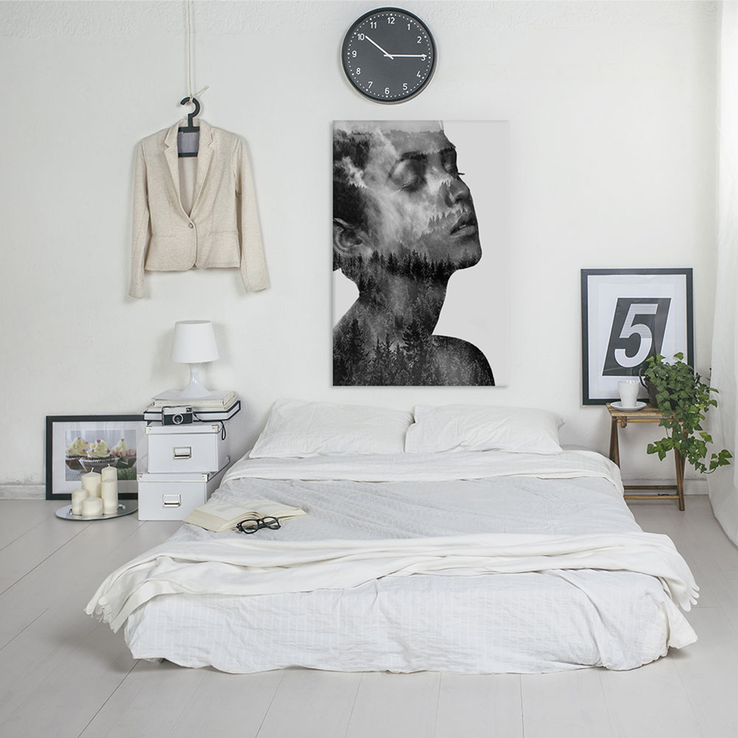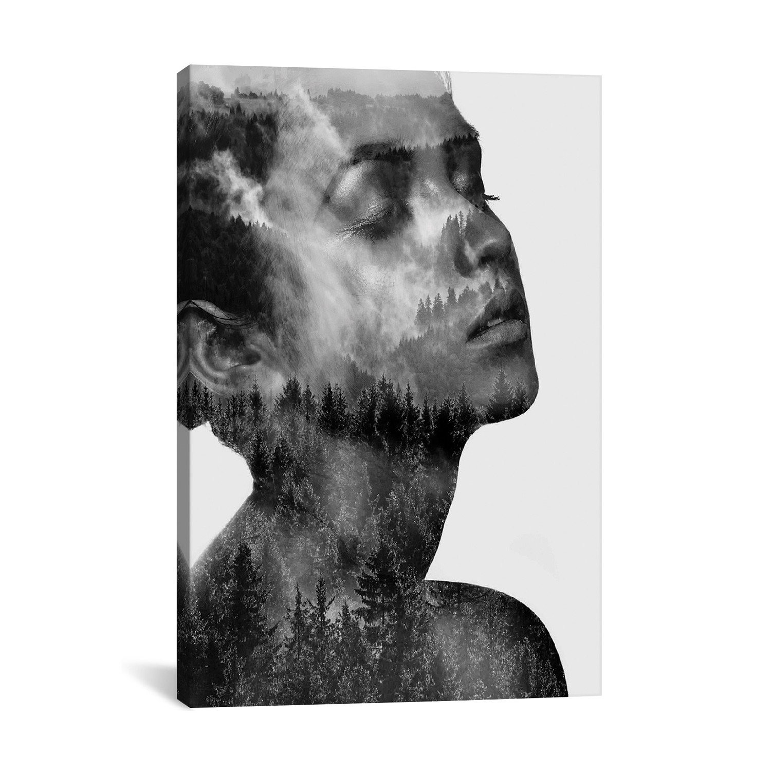 Using double exposure and whimsical imagery, this canvas print by Andreas Lie contains all the mystery of the natural world within its graphic shapes. A blend of photography and digital design, it's a tribute to the aesthetics of folklore and fantasy.