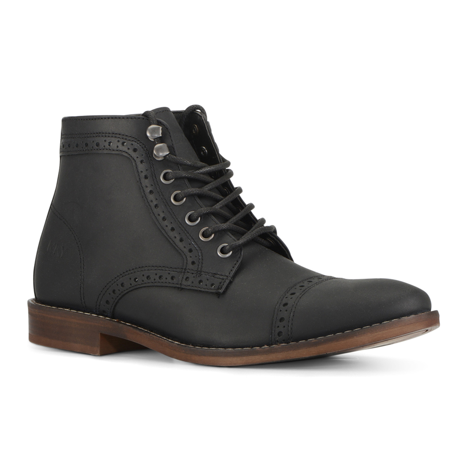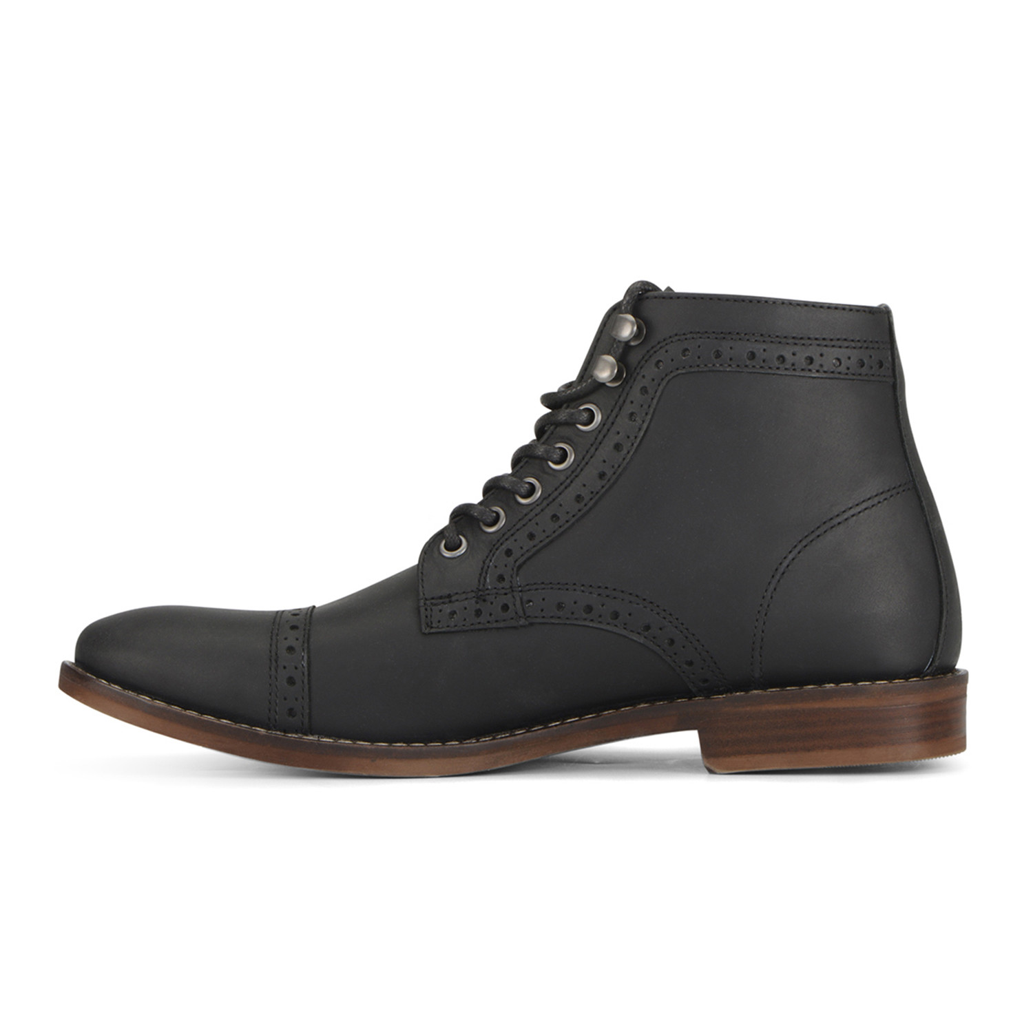 Achieve maximum sophistication and style with the Clay, a mid-height cap toe boot with brogue detailing. This vintage styled boot features a full grain leather upper, metal speed hooks and eyelets, padded sockliner with memory foam heel and flat waxed dress laces.