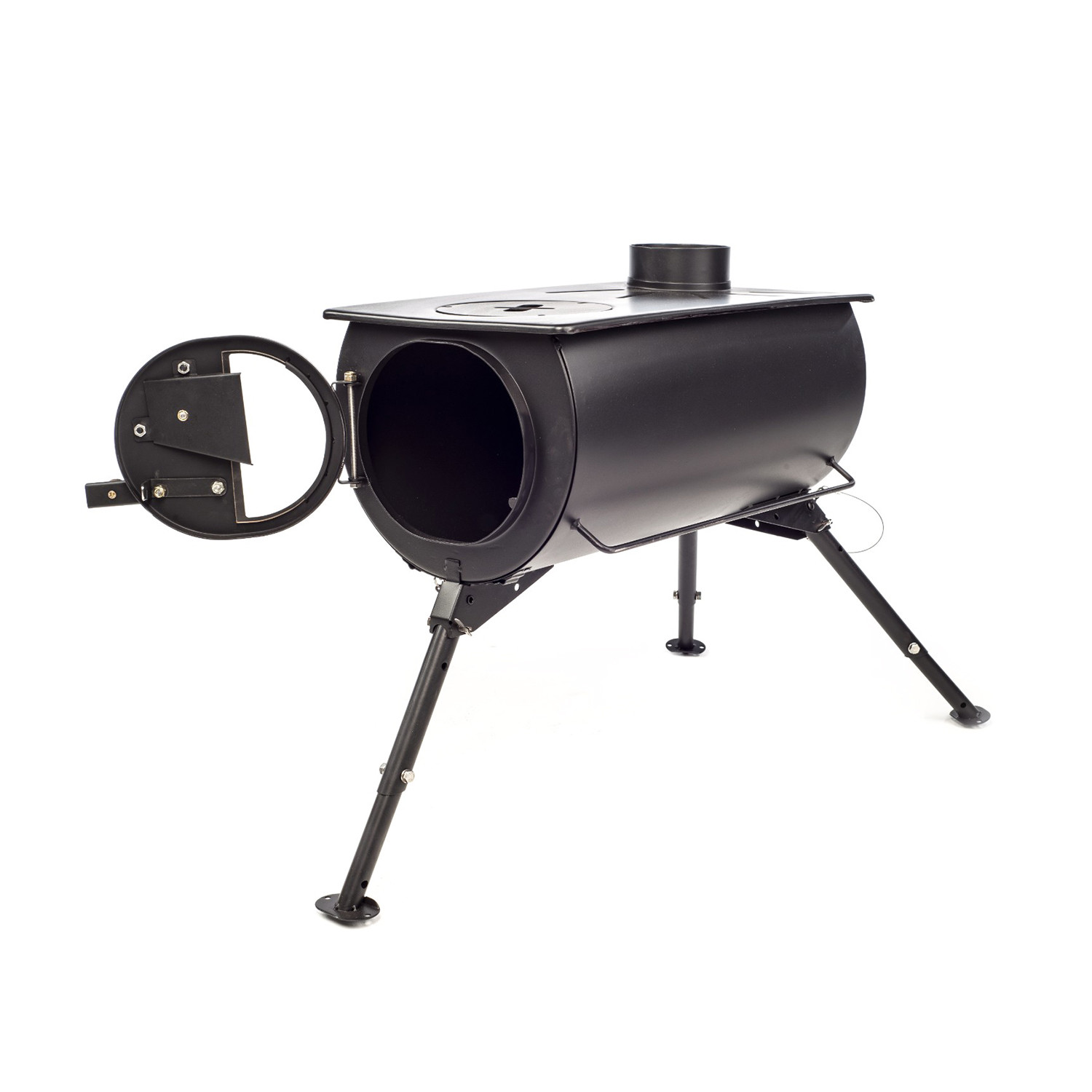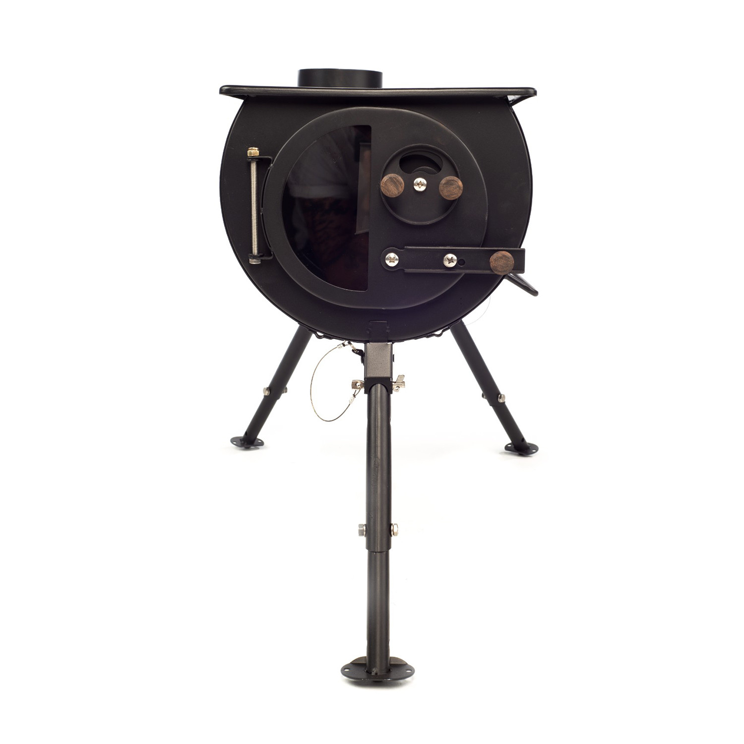 The Frontier Plus is a next-generation portable wood stove that can be used in tents, tiny homes, vans and outside for adventurous outdoor cooking. Based on Anevay's cult favourite Frontier Stove, the Frontier Plus has been upgraded with a glass door, a secondary air control on the door with oak knobs, and a bigger 4-inch flue for improved draw.