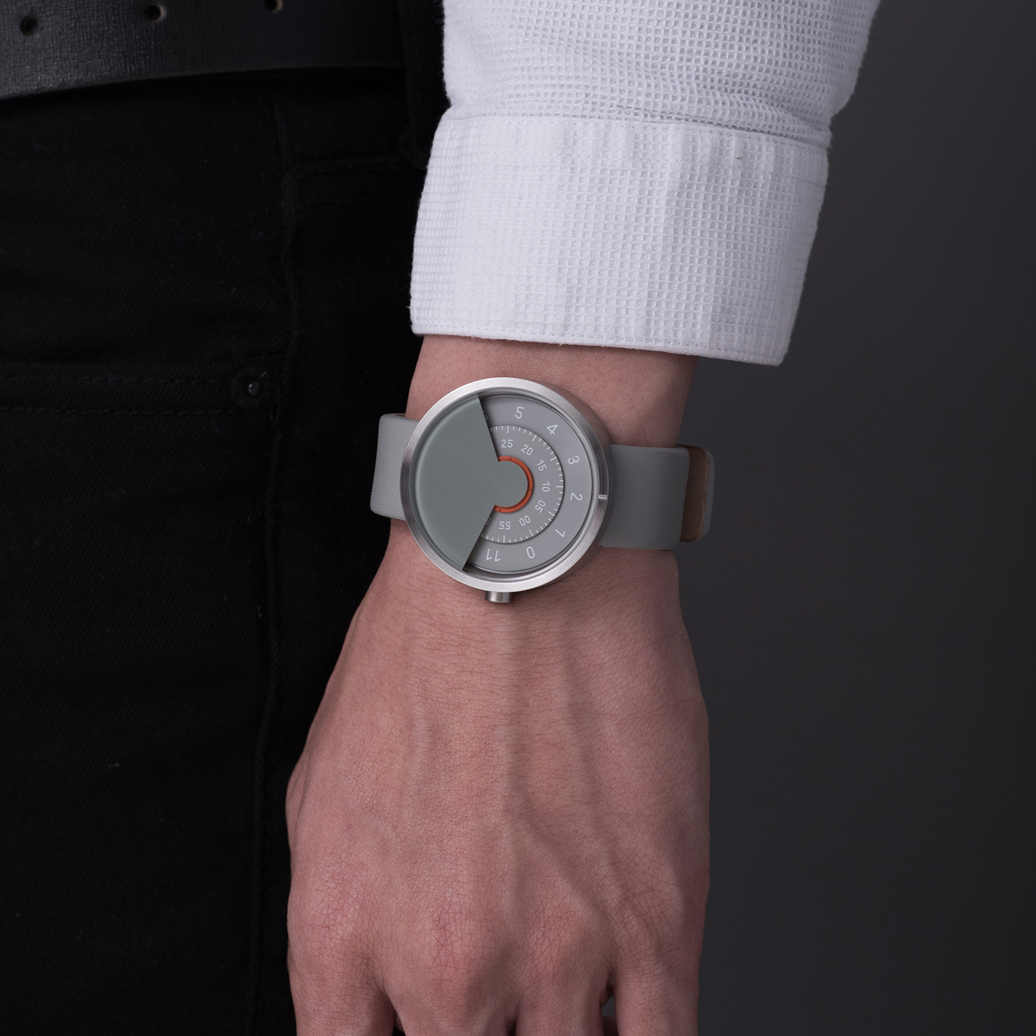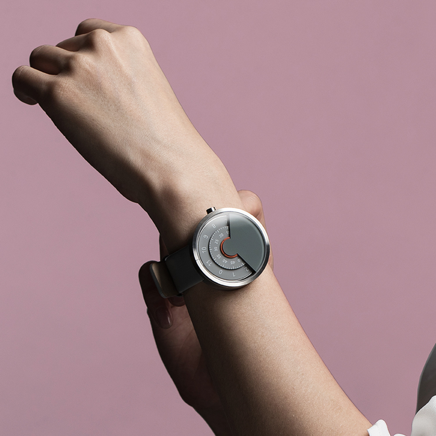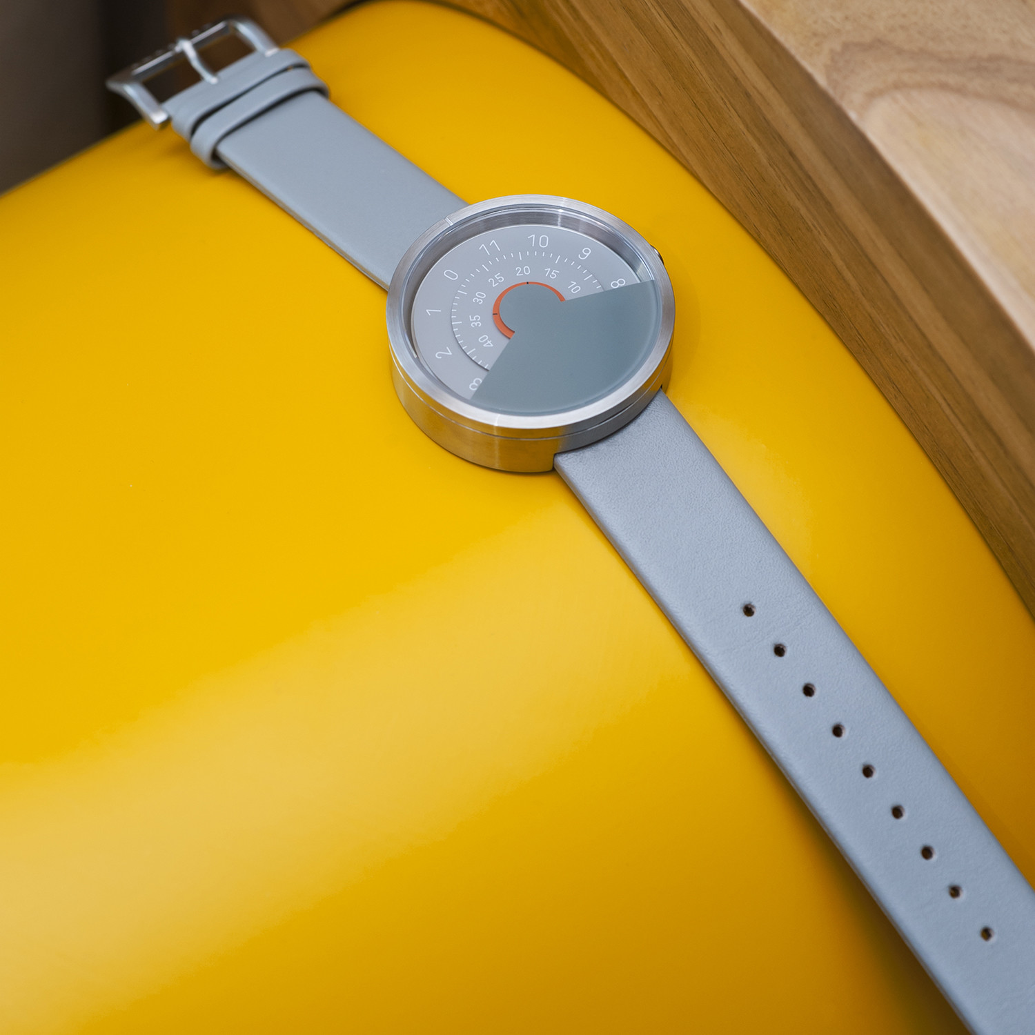 With special attention to every detail of the design, including the typeface, this Anicorn watch typifies the watchmaker's pursuit of aesthetic perfection. Its unusual method of indicating the type will make you slow down, think, and open up to new possibilities.
