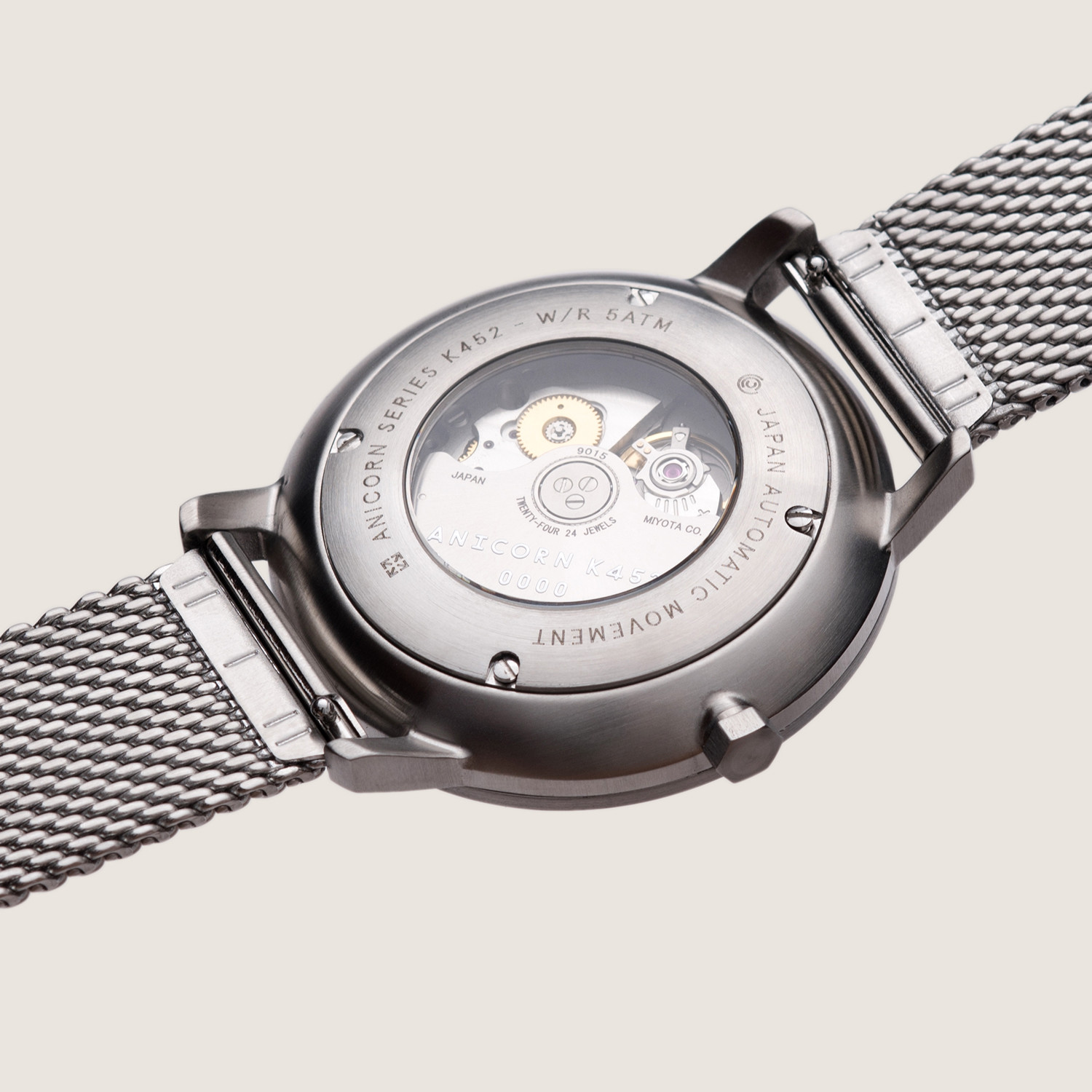 With special attention to every detail of the design, including the typeface, this Anicorn watch typifies the watchmaker's pursuit of aesthetic perfection. Its unusual method of indicating the type will make you slow down, think, and open up to new possibilities.