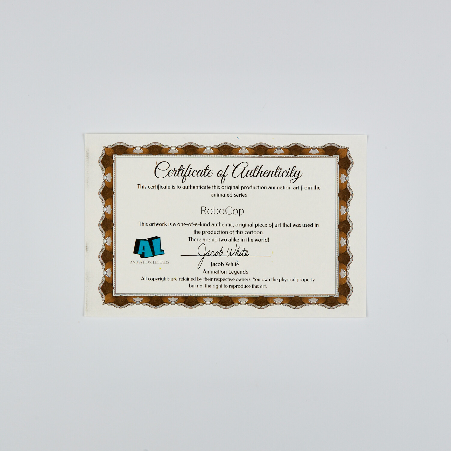 These are hand-painted animation cels that were used to create key frames from RoboCop, the animated series that aired in 1998.The animation aired as part of the Marvel Action Universe programming block and was produced by AKOM productions. Every cel is one of a kind and was screen-used in the production of the animated series.