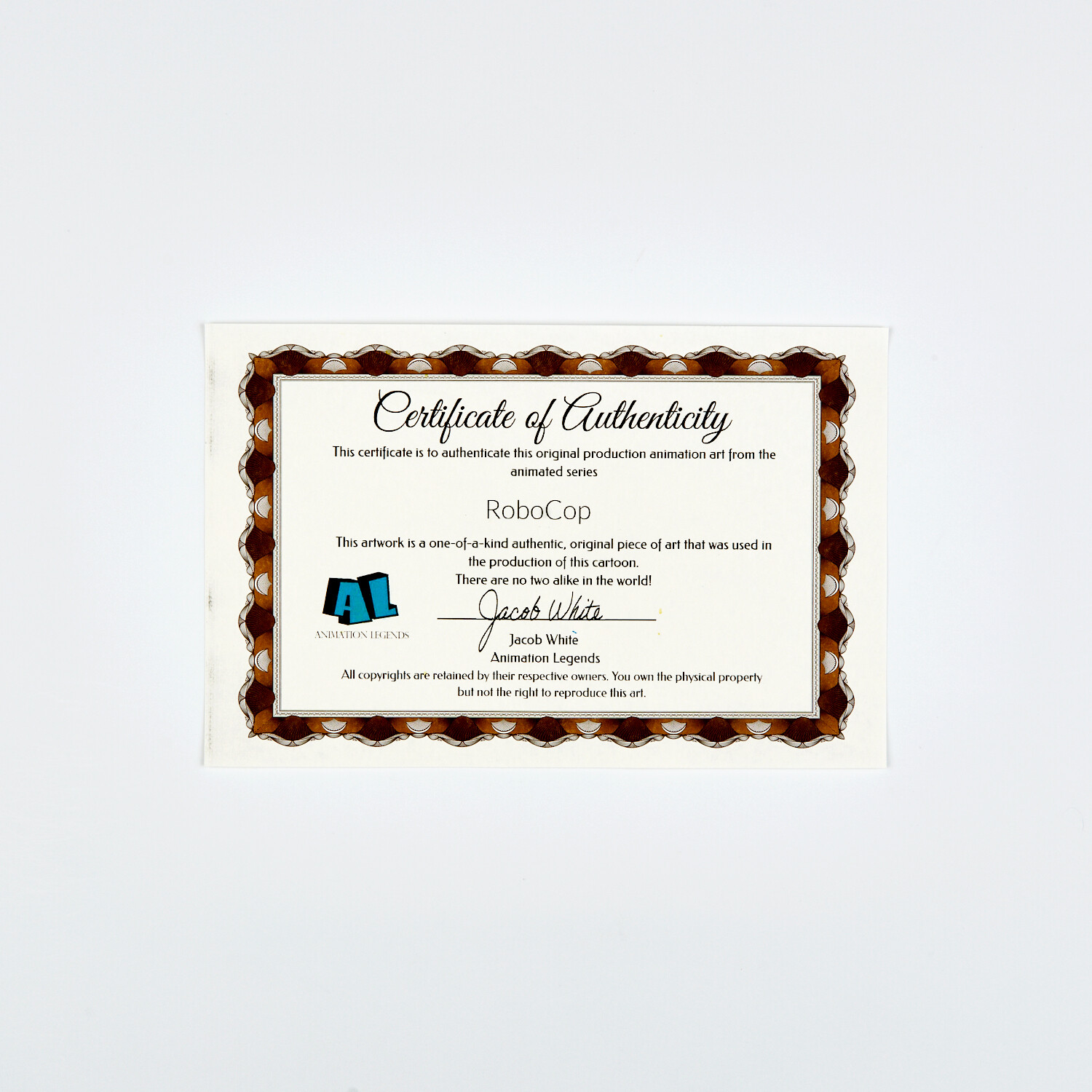 These are hand-painted animation cels that were used to create key frames from RoboCop, the animated series that aired in 1998.The animation aired as part of the Marvel Action Universe programming block and was produced by AKOM productions. Every cel is one of a kind and was screen-used in the production of the animated series.